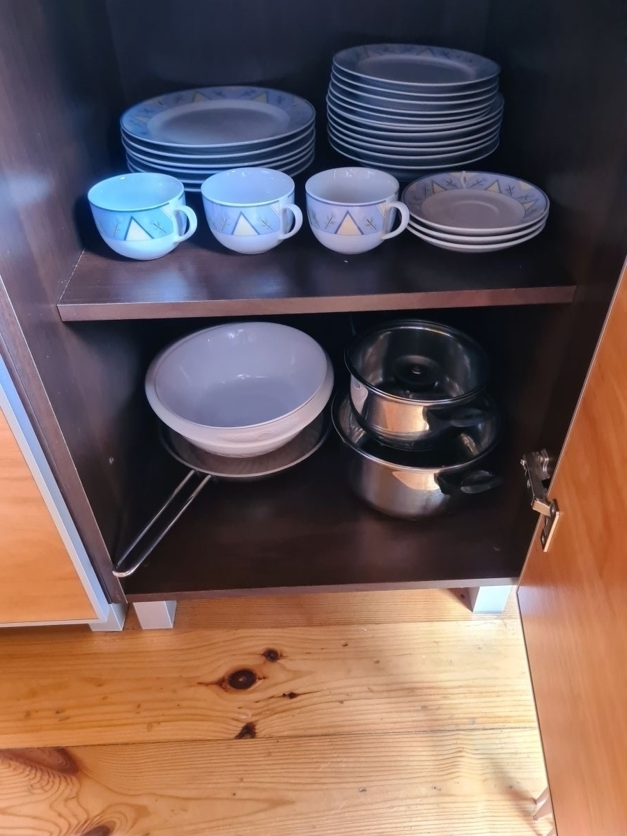 • kuchnia: chłodziarko - zamrażarka, czajnik bezprzewodowy, ceramiczna płyta grzewcza, zastawa stołowa i kuchenna, naczynia, garnki itp