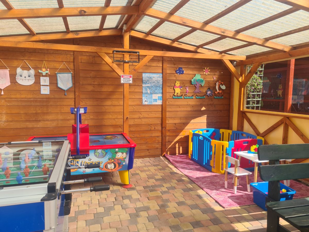 - kącik dla dzieci (klubik malucha, piłkarzyki, cymbergaj)