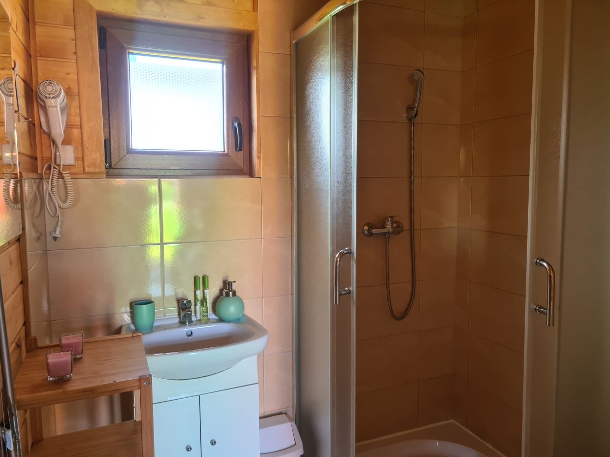 • łazienka z kabiną prysznicową – wc - umywlka - suszarka - lustro