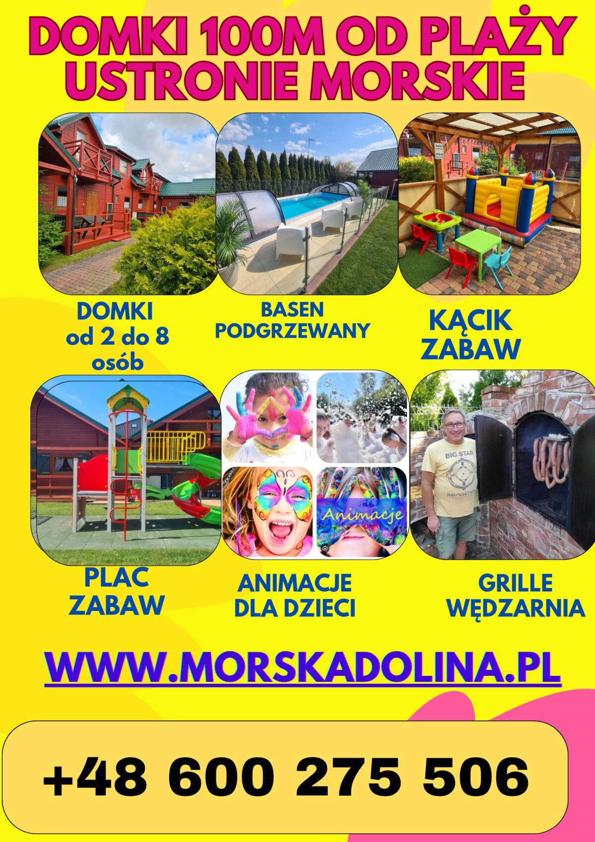 Domki i apartamenty z basenem 100 m od PLAŻY z BASENEM !ANIMACJE DLA DZIECI !