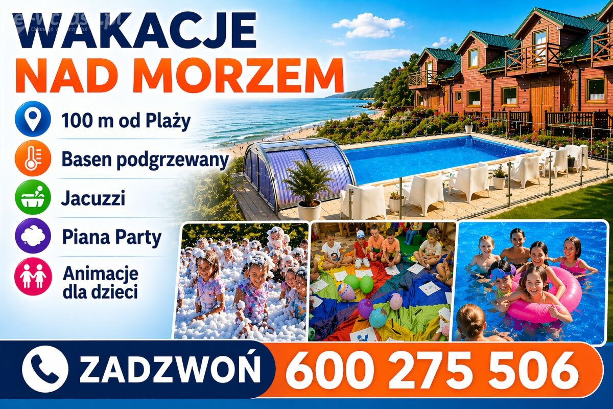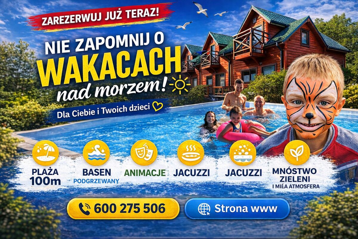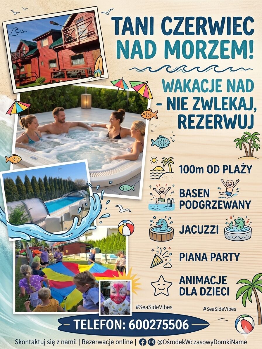 Domki i apartamenty z basenem 100 m od PLAŻY z BASENEM i ANIMACJAMI !