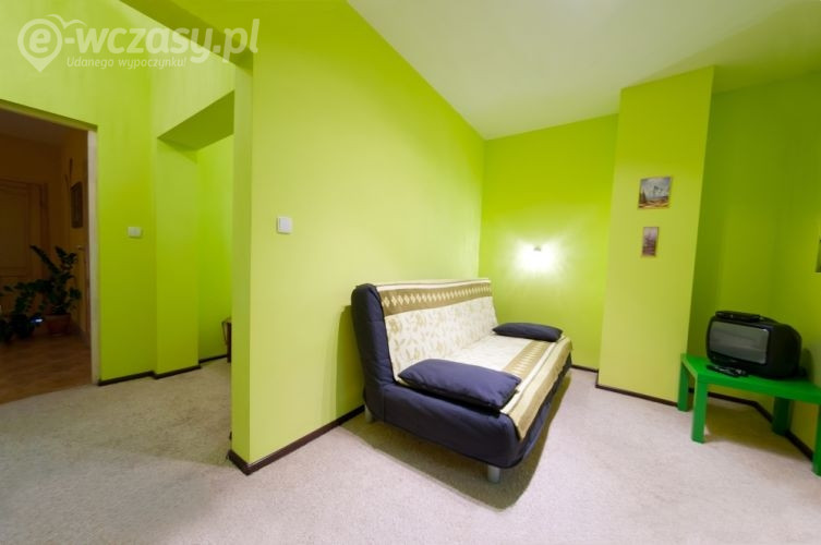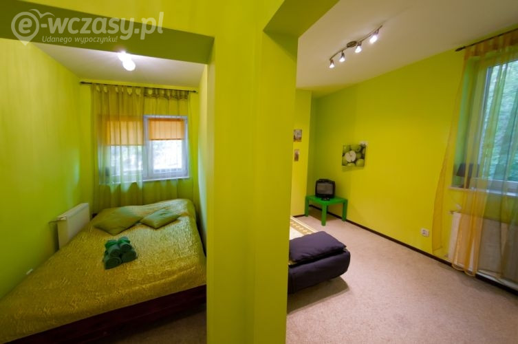 Zielone Jabłuszko jest to pokój czteroosobowy z łazienką, składający się z dwóch pokoi oddzielonych ścianą. W pierwszej części znajduje się podwójne łóżko małżeńskie, a w drugiej części podwójne łóżko rozkładane. Pokój wyposażony jest w telewizor, czajnik, filiżanki, ręczniki do dyspozycji Gości.