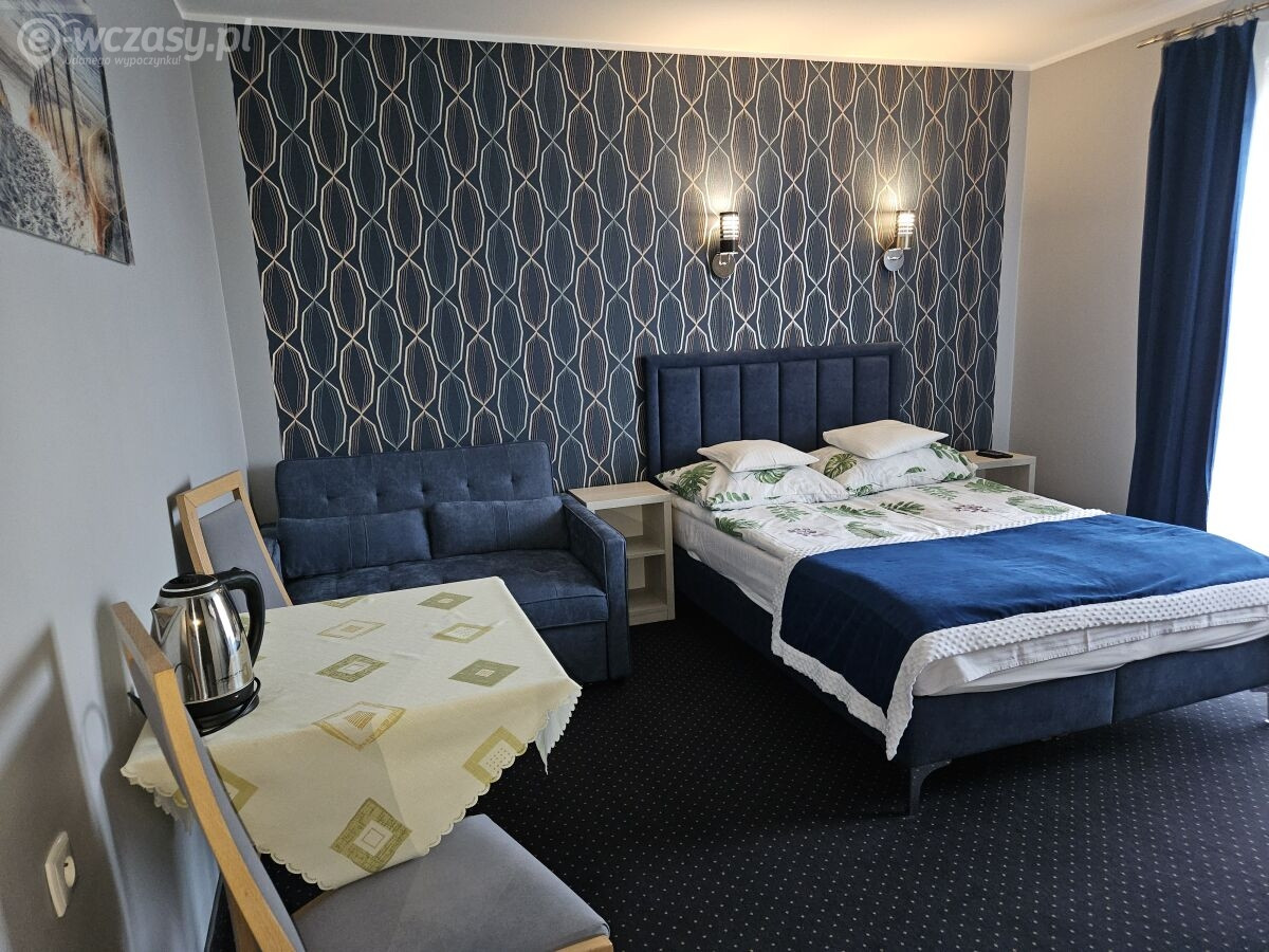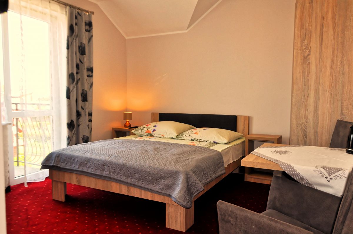 Na gości czeka siedem pokoi dwuosobowych oraz dwa trzyosobowe. Pokoje są komfortowo wyposażone, każdy posiada własną łazienkę, telewizor, balkon, czajnik bezprzewodowy, podstawowe naczynia oraz ma zapewniony dostęp do internetu. Pokojom uroku dodają łóżka małżeńskie. Istnieje również możliwość rezerwacji pokoju z pojedynczymi łóżkami. W ofercie mamy również studio rodzinne, dwupokojowe. Składające się z sypialni 4 osobowej i saloniku z rozkładaną kanapą. Pokoje usytuowane są na I piętrze oraz na poddaszu. Na poddaszu znajduje się aneks kuchenny. Zapraszamy gości przez cały rok.