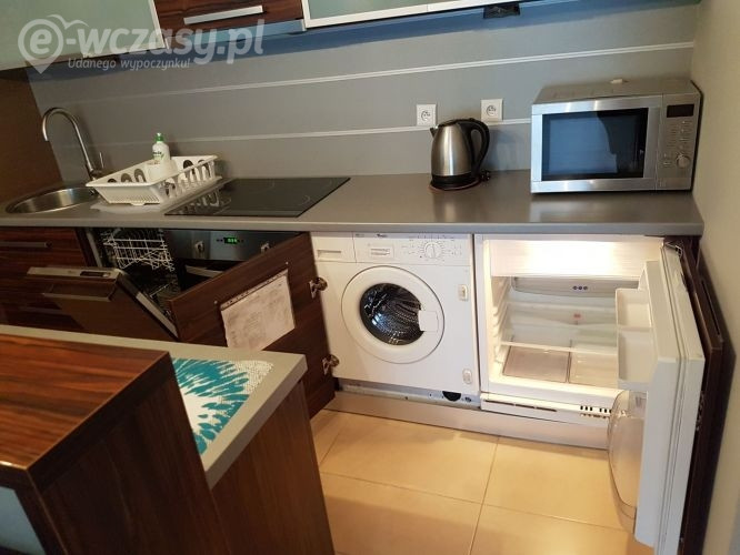 W każdym z naszych Apartamentów, znajduje się pełny węzeł sanitarny, oraz kompleksowe wyposażenie kuchenne, na stanie znajdują się również sprzęty gospodarstwa domowego takie jak żelazko, odkurzacz i inne akcesoria.