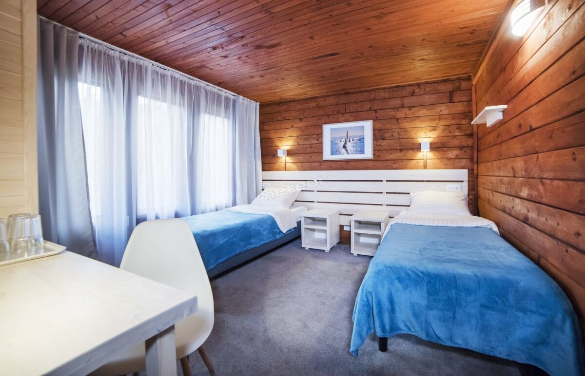 • Domki 4 osobowe: 2 pokoje 2-osobowe, łazienka (prysznic, WC, umywalka), TV, lodówka, czajnik,