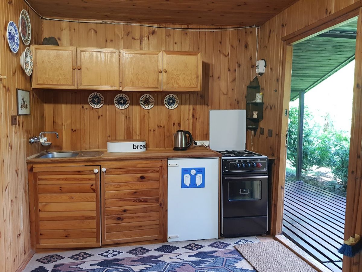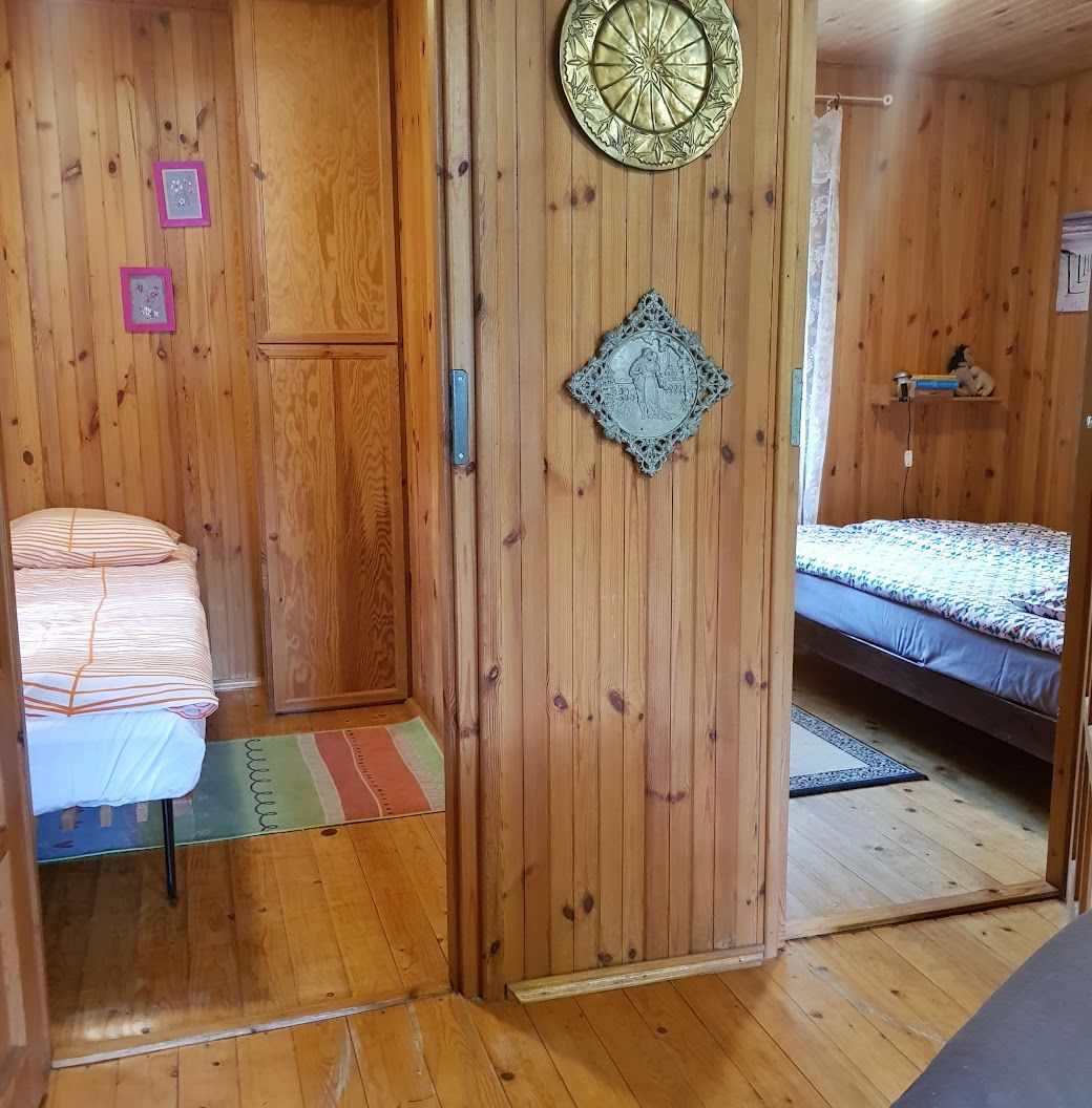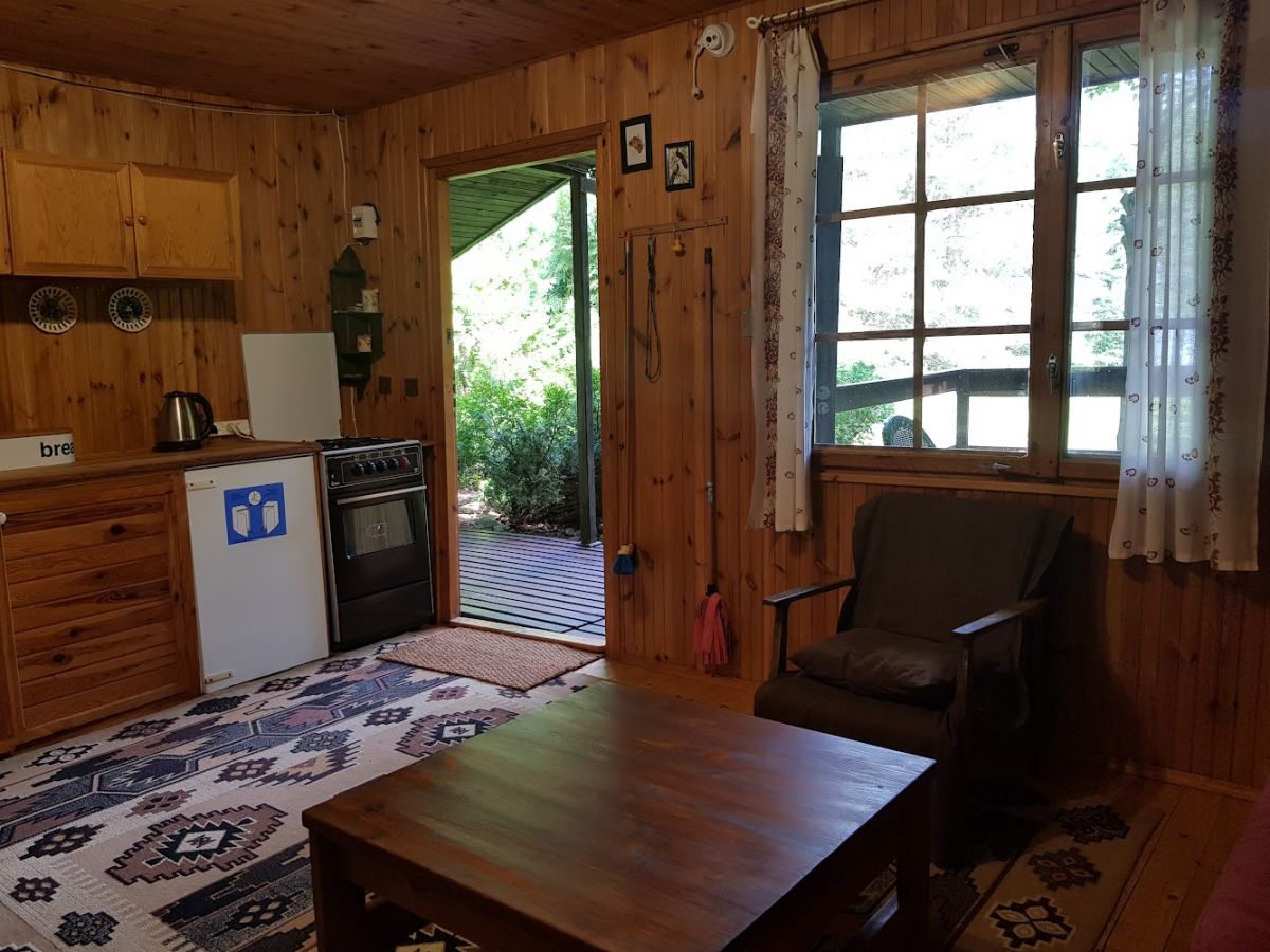 Domek drewniany dla 4 osób. Domek ma 2 dwuosobowe sypialnie, pokój dzienny oraz aneks kuchenny i łazienkę.