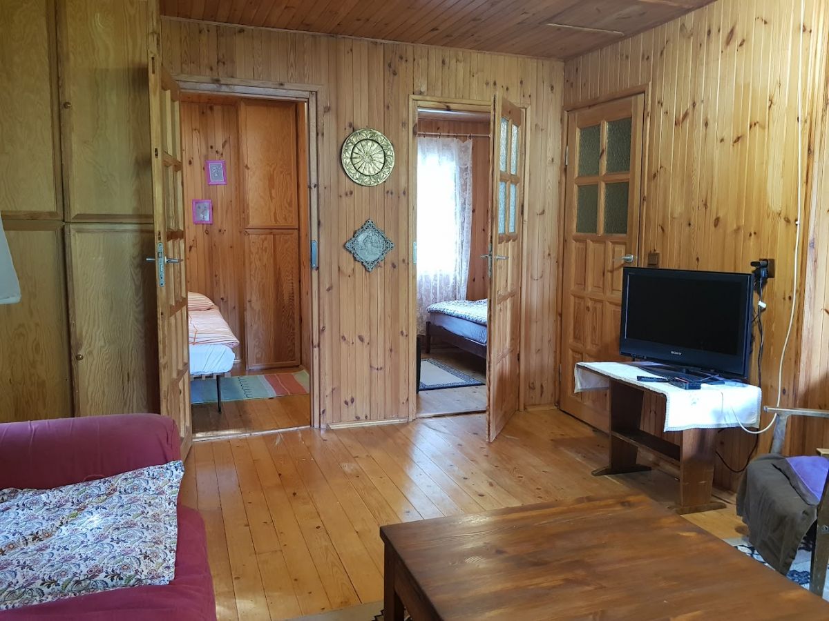 Dom letniskowy dla 4 osób na ogromnej, ponad półhektarowej działce. Działka liczy 6 tys m2. Na Działce znajduje się jeden domek, ten w którm będziecie Państwo mieszkali.