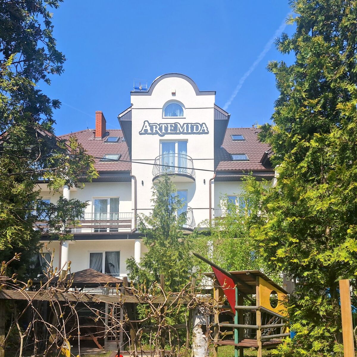 Dom wypoczynkowy ARTEMIDA, wspaniałe miejsce do wypoczynku dla wszystkich amatorów nadbałtyckiego klimatu, spragnionych oddechu czystym, świeżym powietrzem, przesyconym nieocenionym jodem. To miejsce idealne dla turystów poszukujących spokojnych, nieco tylko oddalonych od miejskiego gwaru, okolic z pięknym Nadmorskim Parkiem Krajobrazowym i mnóstwem czarownych miejsc na piesze wycieczki oraz niezapomnianą, piękną i szeroką plażą mieniącą się czystym, drobnym piaskiem. To, wreszcie, wymarzone, bezpieczne, w pełni przyjazne i przystosowane lokum dla rodzin z dziećmi w każdym wieku.