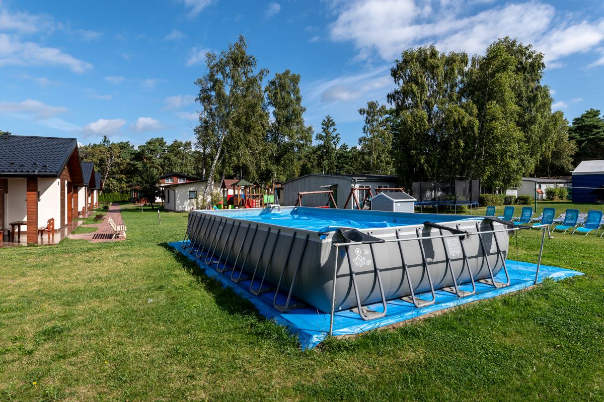 Na terenie kompleksu znajduje się strefa rekreacyjna z licznymi atrakcjami dla naszych najmłodszych Gości: bezpieczny, certyfikowany plac zabaw z trampoliną i huśtawkami oraz boisko do siatkówki. Posiadamy również dwa duże baseny stelażowe. Naszym Gościom dodatkowo udostępniamy ogólnodostępną altankę grillową oraz miejsca parkingowe na prywatnej, zamykanej posesji. Dla Gości aktywnych oferujemy siłownię zewnętrzną i wypożyczalnię rowerów.