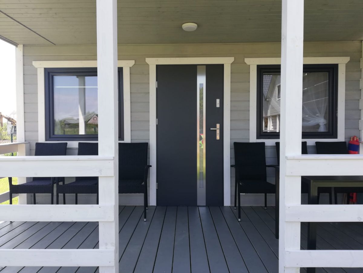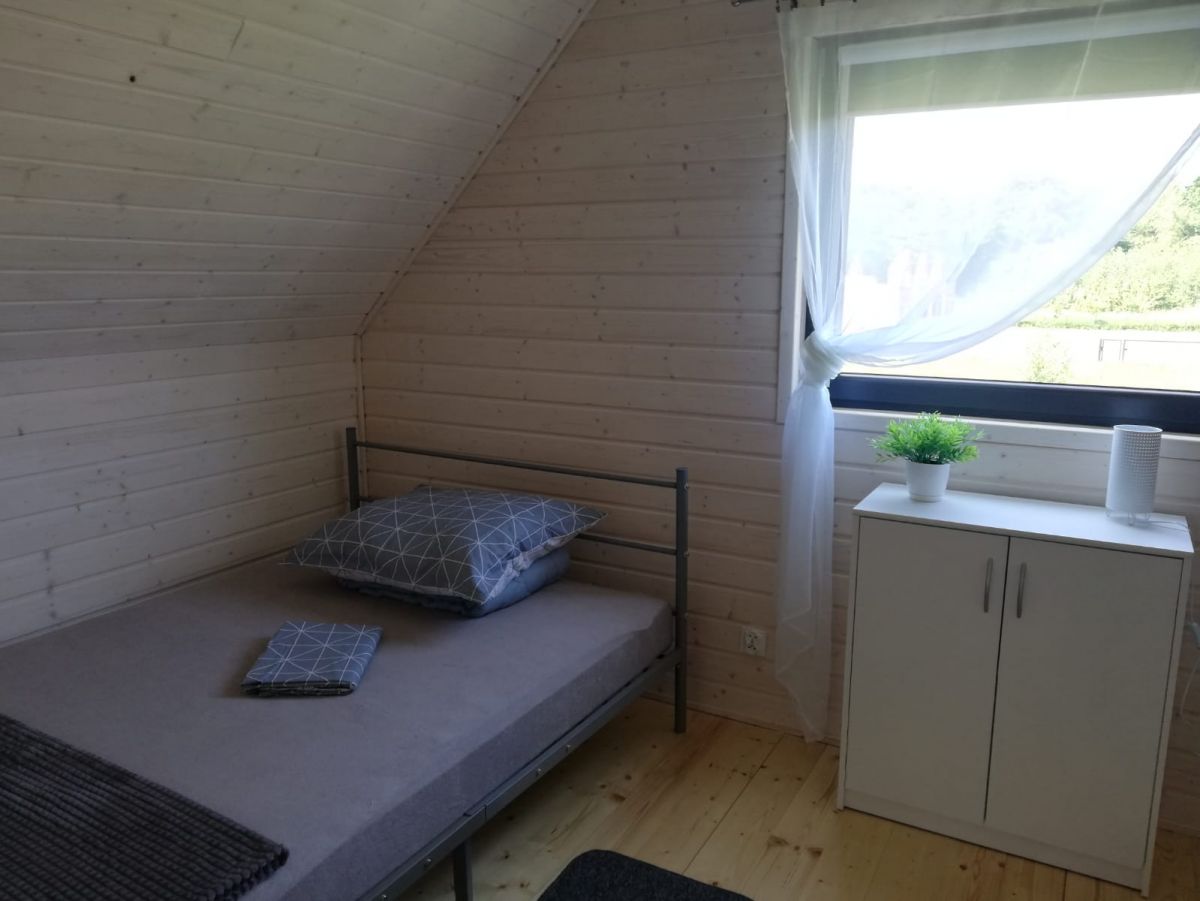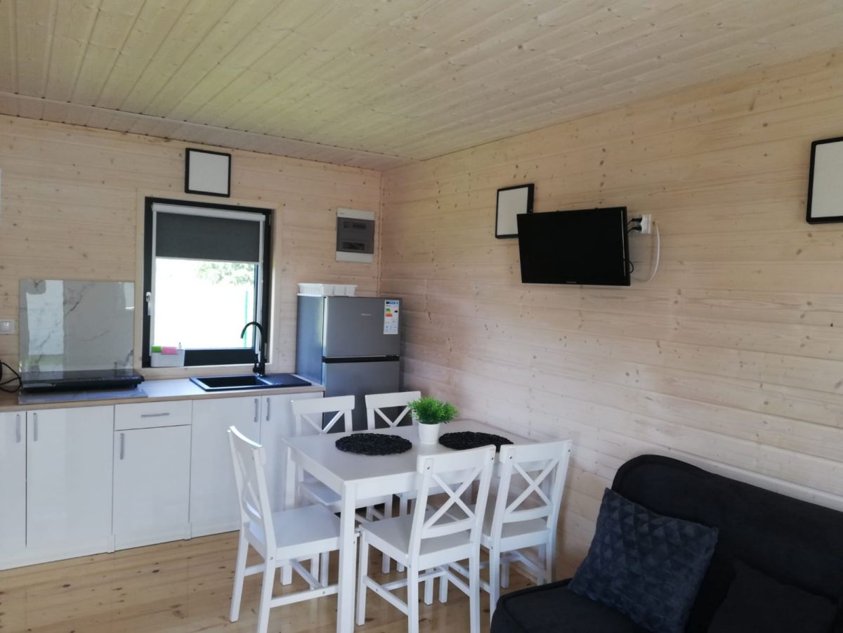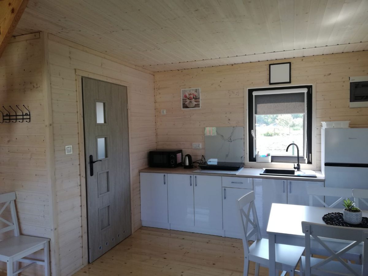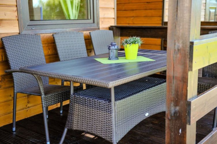 Parter to wygodny pokój dzienny z aneksem kuchennym, łazienką z prysznicem, WC i umywalką. Przed domkiem wygodny taras z meblami ogrodowymi.