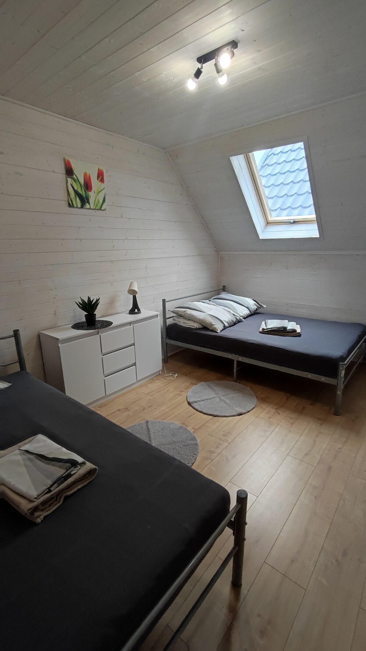 - dwie oddzielnie zamykane sypialnie 4 osobowe (łóżko małżeńskie i łóżko pojedyncze), komoda