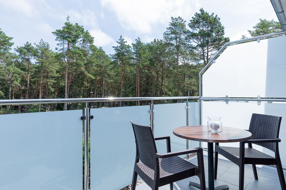 Jednopoziomowe, typu B – o powierzchni 50 m2, 4-osobowe z możliwością 2 dostawek, posiadające sypialnię, pokój dzienny, kuchnię (w pełni wyposażoną w: zmywarkę, lodówkę, kuchenkę elektryczną, mikrofalówkę, komplet naczyń), łazienkę z kabiną prysznicową, taras o powierzchni 22 m2. Ten typ apartamentów przystosowany jest także do potrzeb osób niepełnosprawnych.