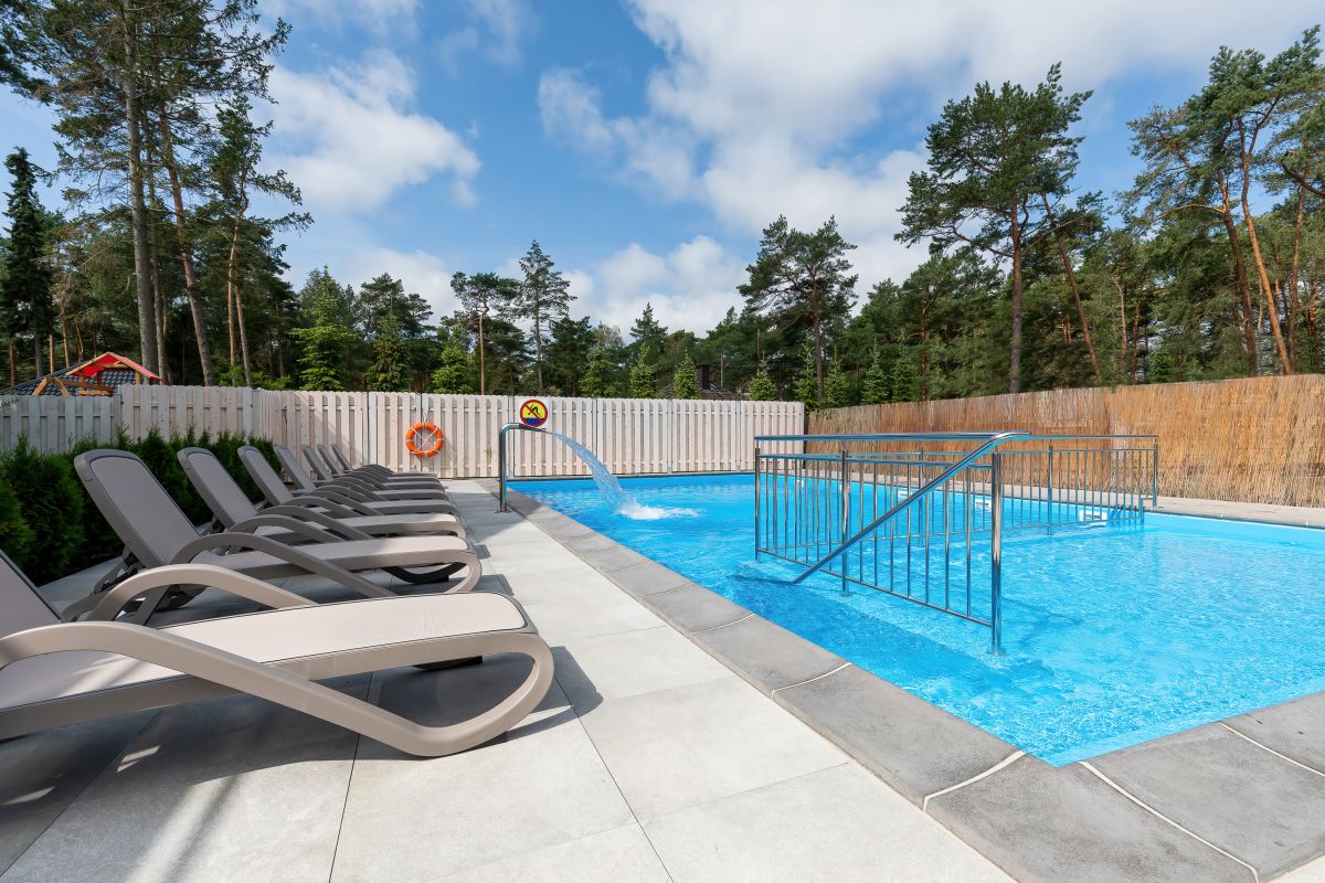 Na terenie obiektu znajduje się basen z podgrzewaną wodą (z wydzielonym brodzikiem dla dzieci), plac zabaw z trampoliną, miejsce na grilla oraz parking.