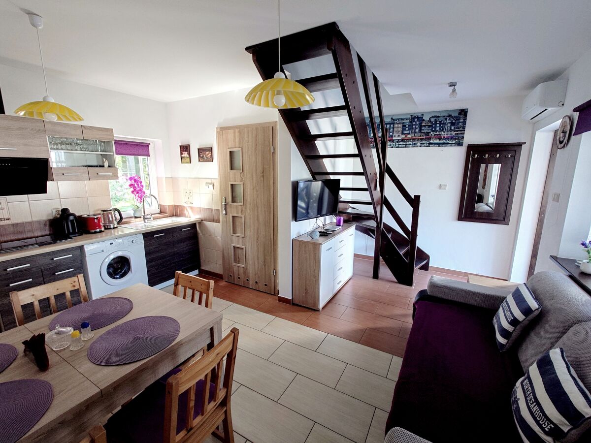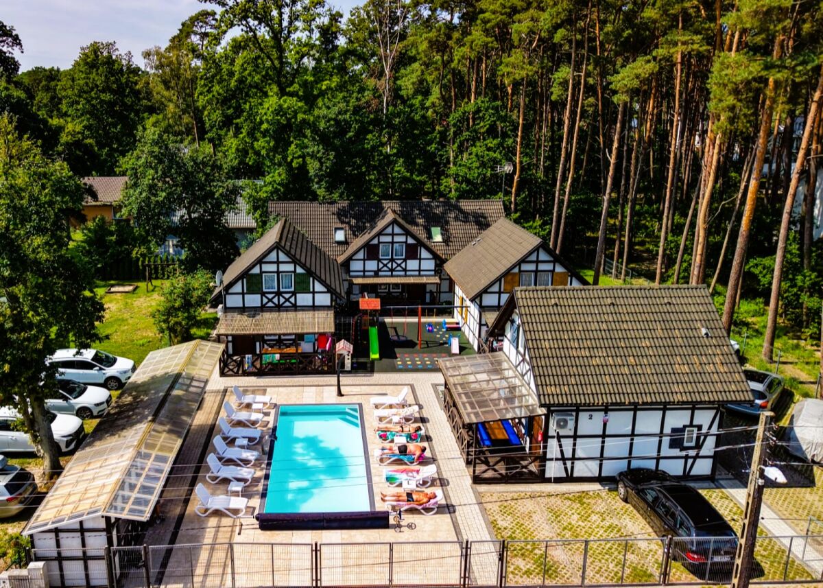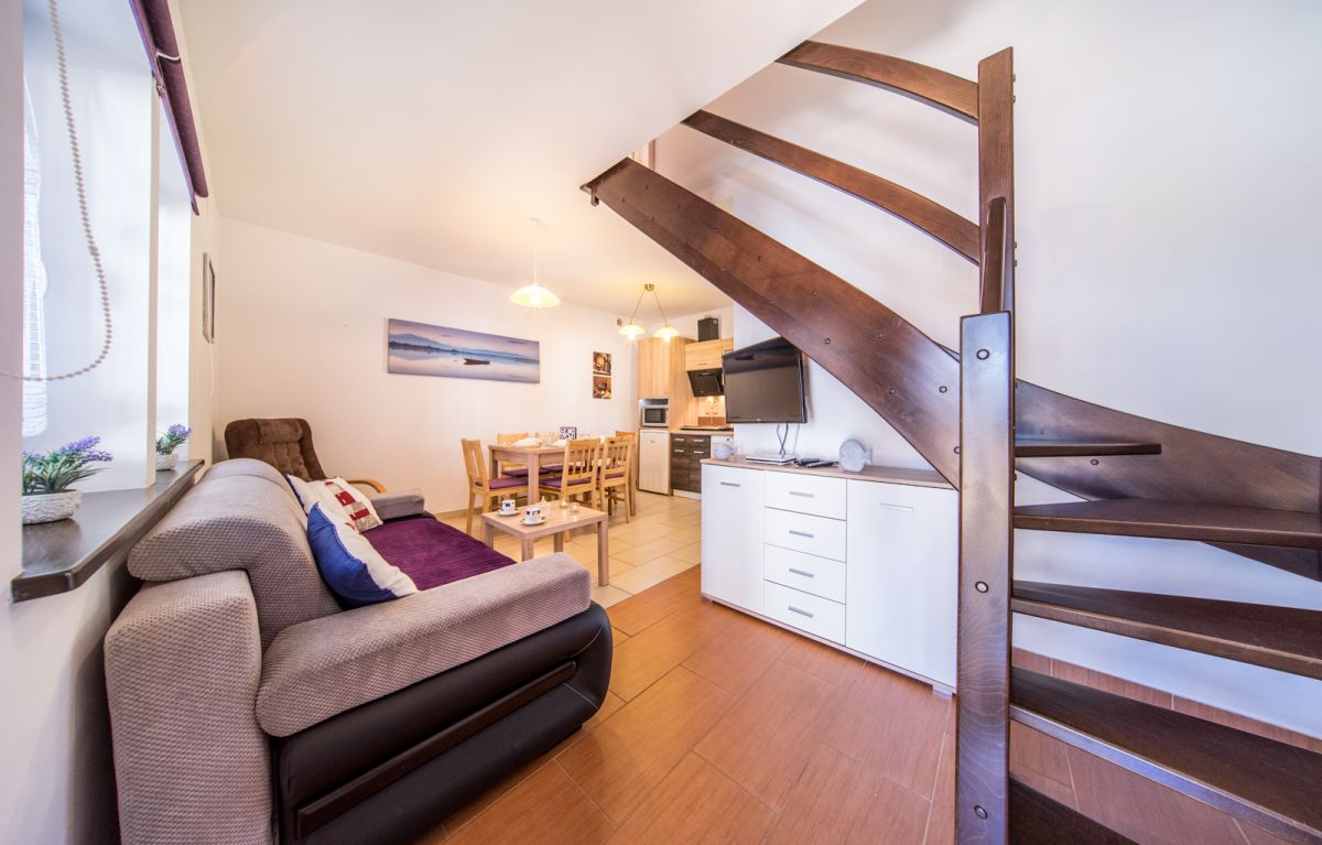 W każdym domku o powierzchni 70m² zakwaterowanych może być 4 - 8 osób.