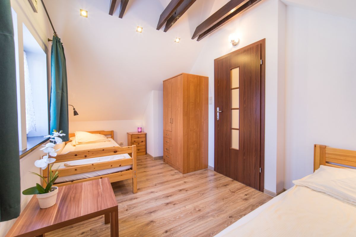 2 sypialnie 3 - osobowe, każda wyposażona w łóżko małżeńskie i łóżko pojedyncze, szafę, szafki przyłóżkowe,