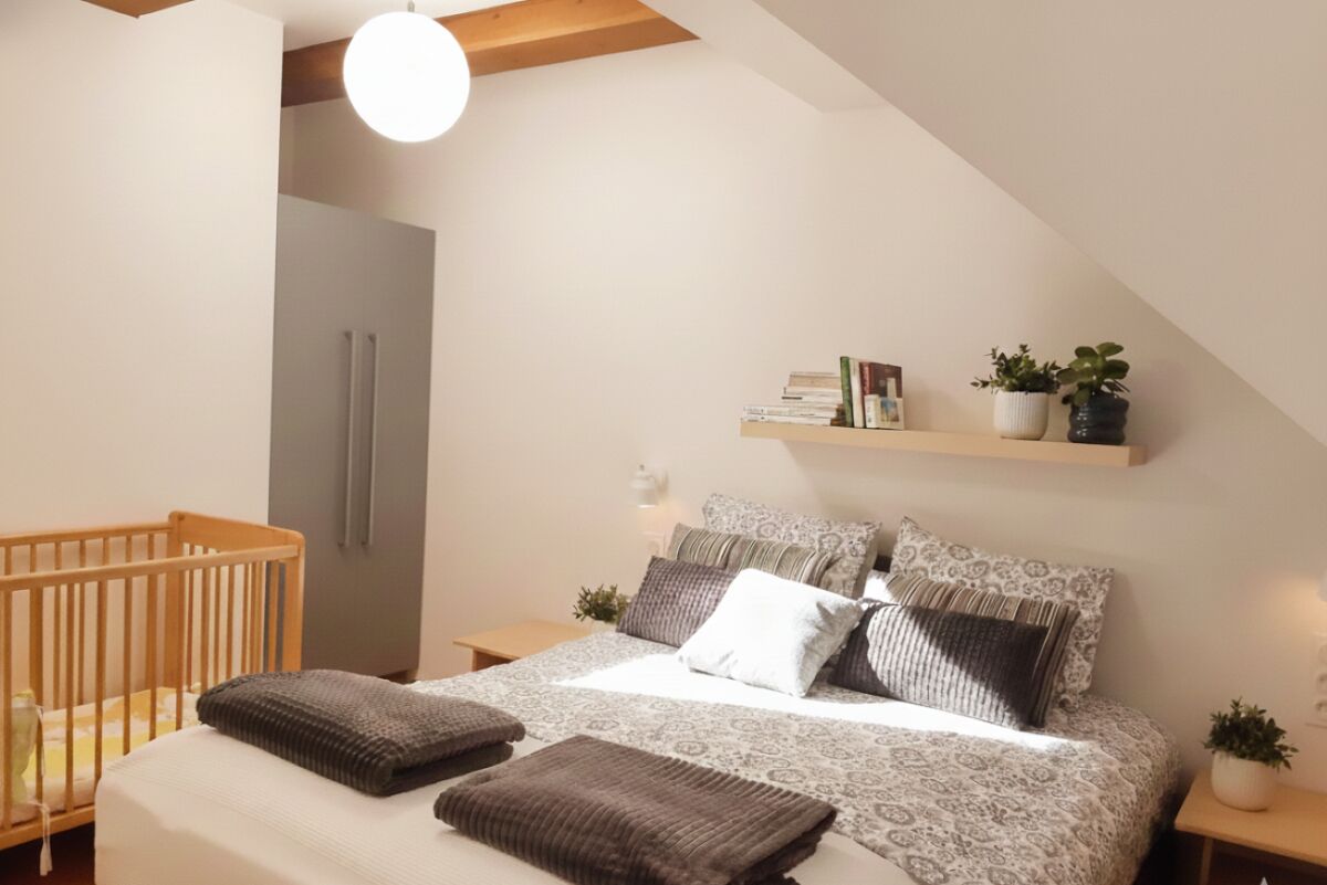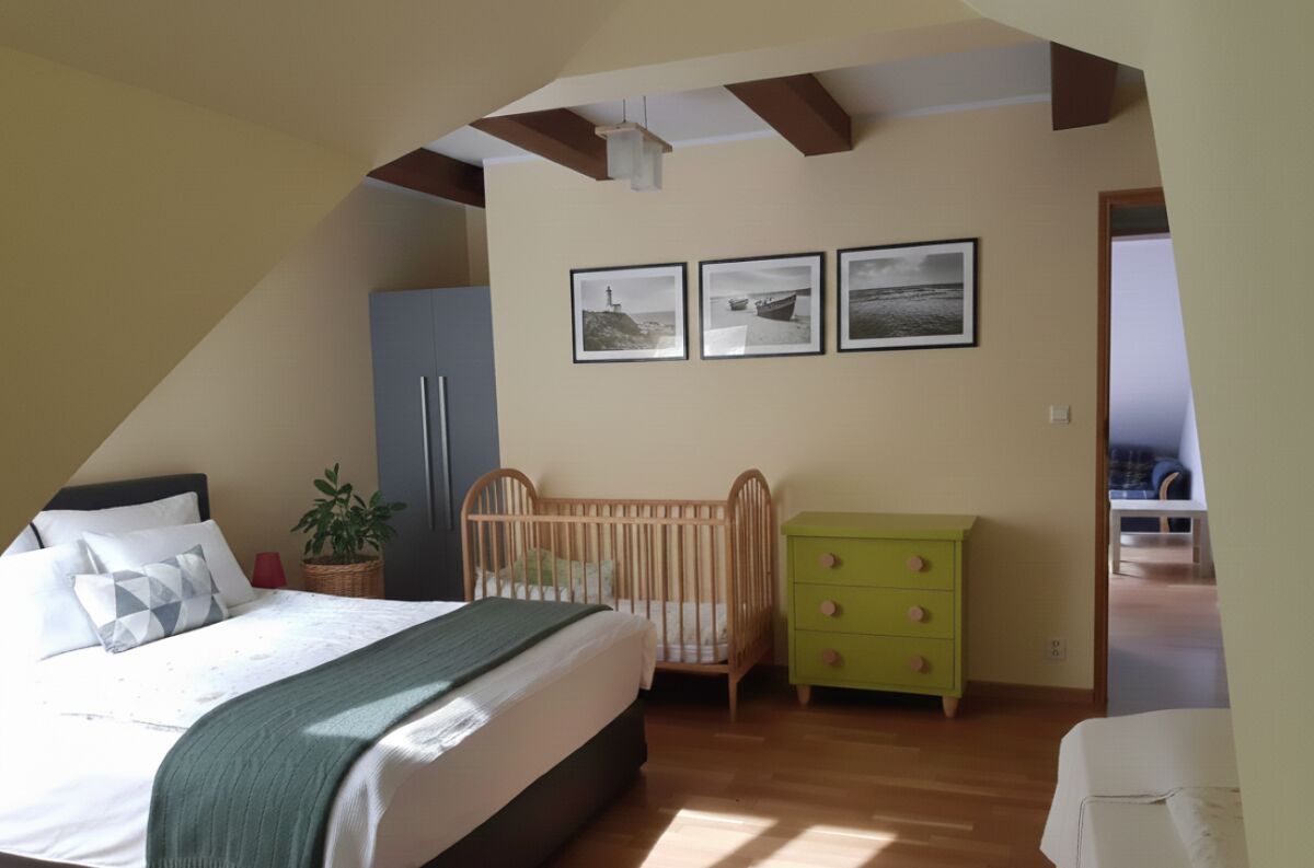 Na piętrze znajdą Państwo natomiast dwie duże sypialnie z osobnymi wejściami: