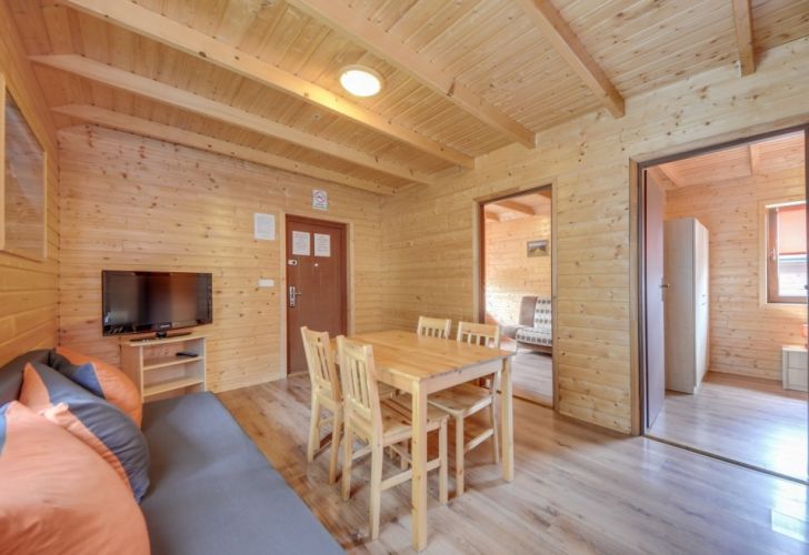 Dla gości przygotowaliśmy 6 nowych i dużych domków letniskowych. W każdym domku 2 oddzielne sypialnie, kuchnia, salon, łazienka, telewizja z pakietem kanałów, a także bezpłatny dostęp do internetu. Do dyspozycji gości miejsce na grill, plac zabaw, parking.