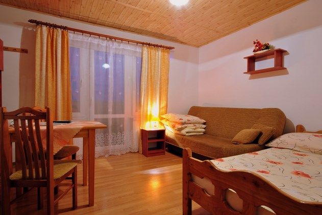 Pokoje wyposażone w łoże małżeńskie z bardzo dobrej jakości wygodnym materacem sprężynowym oraz do tego wersalka, która służy jako kanapa lub dodatkowe spanie. W każdym z pokoi przygotowaliśmy dla Państwa w pełni wyposażona łazienkę, TV oraz pojemną szafę. Dodatkowo każdy z 5 pokoi na piętrze ma do dyspozycji balkon na którym można podziwiać widoki oraz zaczerpnąć świeżego powietrza.