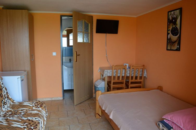 Oferujemy wolnostojący domek z nowymi 4 pokojami 2-, 3-, i 4-osobowymi z łazienkami i z wejściem z zewnątrz oraz pełnym węzłem sanitarnym. Dodatkowo pokoje wyposażone są w lodówkę, czajnik i TV.