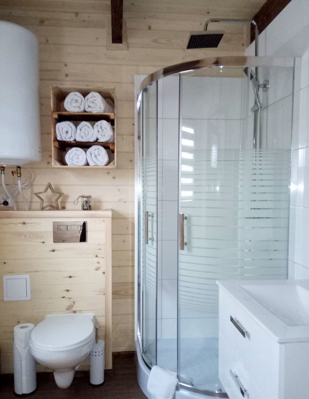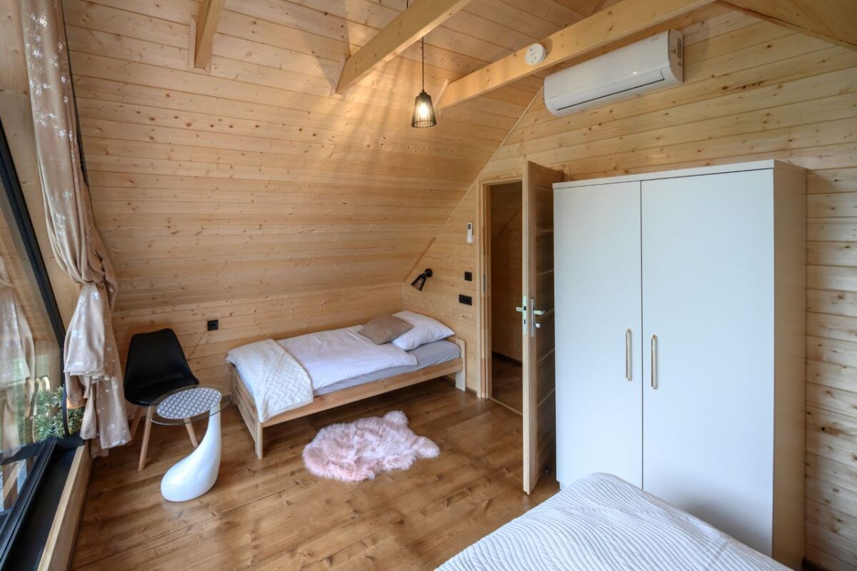 Domki są ogrzewane elektrycznie klimatyzacją z funkcja grzania