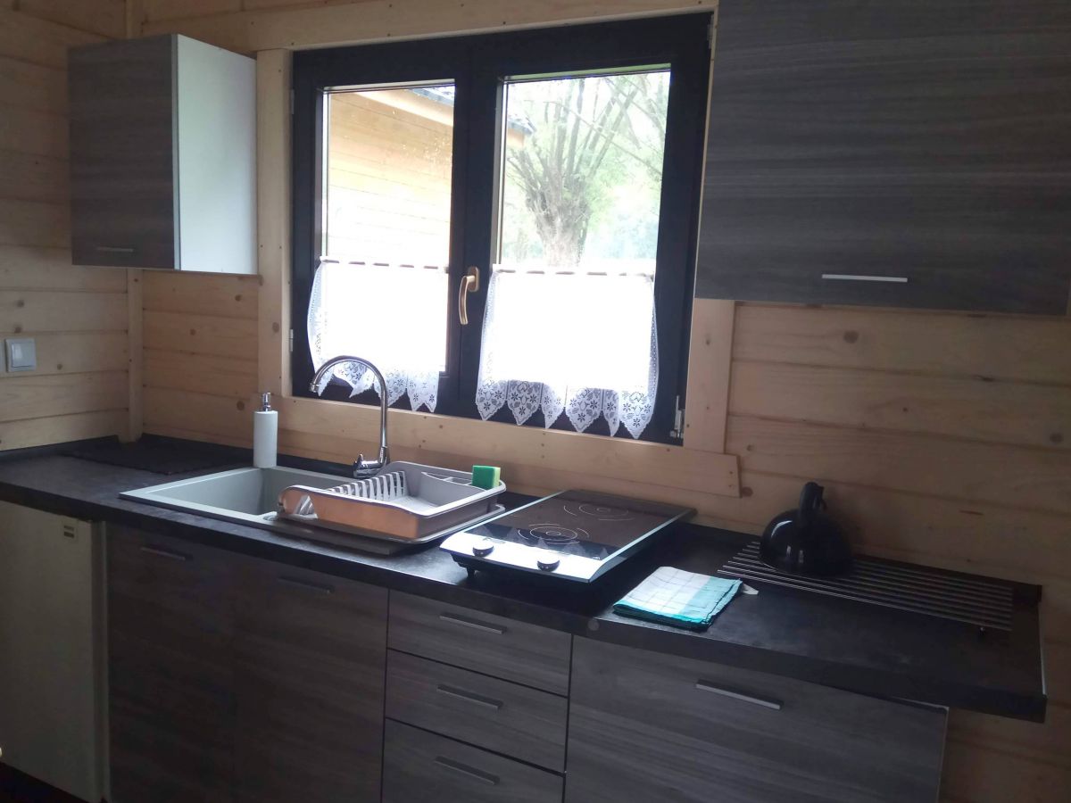 W każdym domku jest kawa, herbata, cukier, sól, pieprz, płyn do naczyń, mydło w płynie, papier toaletowy. Są też podstawowe środki czystości oraz ręczniki.