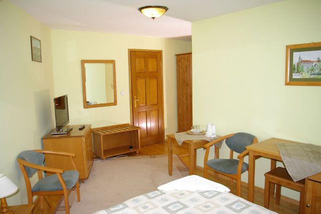 Wszystkie pokoje wyposażone w: TV kablową, czajnik elektryczny, lodówkę, stałe łącze internetowe we wszyskich pokojach.