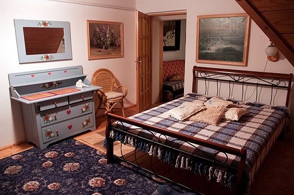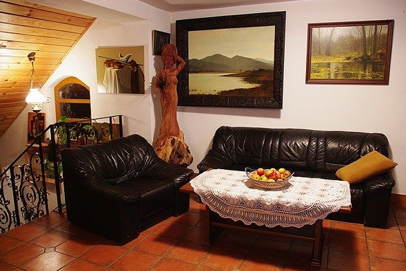 Do dyspozycji gości jest pokój dzienny, jadalnia z tarasem z którego rozciąga się widok na Kotlinę Jeleniogórską, „piekiełko” - pomieszczenie z kominkiem i stałą galerią obrazów. W kranach płynie czysta, źródlana woda czerpana z własnego ujęcia.