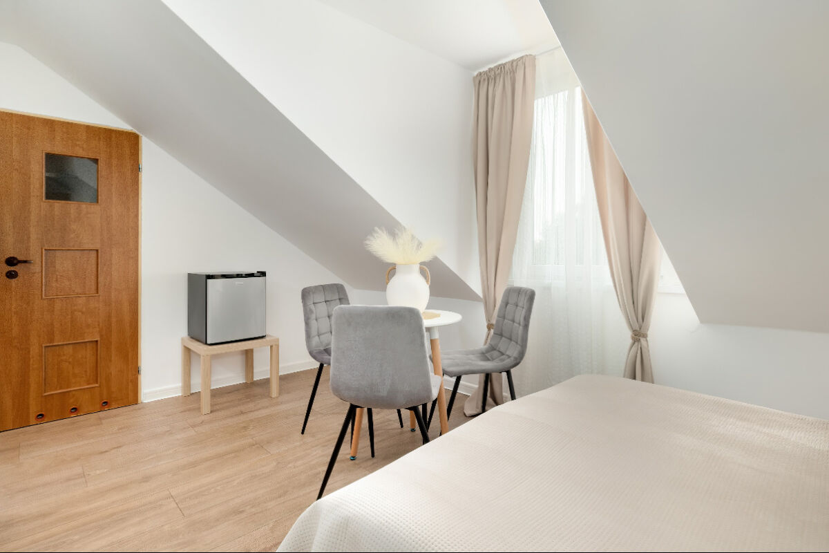 Dla naszych najmłodszych gości, aby zaoszczędzić bagażu rodzicom, zapewniamy łóżeczko turystyczne oraz krzesełko do karmienia.