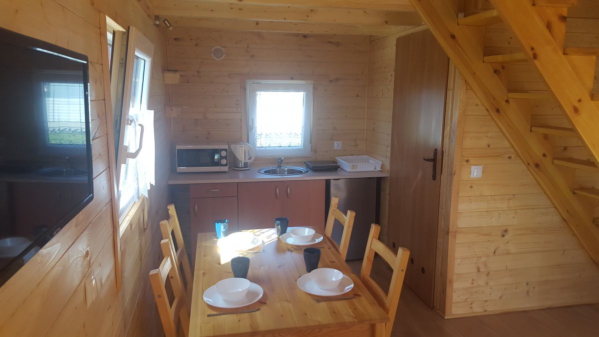 Domki mieszczą jadalnię oraz część wypoczynkową. Goście mają do dyspozycji kuchnię z kuchenką mikrofalową, lodówką, czajnikiem i płytą indukcyjną. W każdym domku znajduje się łazienka z prysznicem. Na miejscu dostępny jest bezpłatny prywatny parking na terenie posesji.