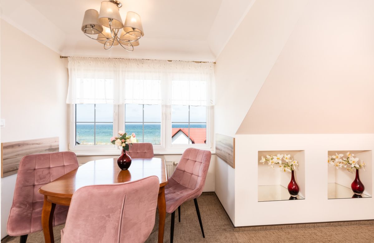 Bliskość do morza robi wrażenie i zachęca do oglądania codziennych zachodów słońca. Do tego taras na dachu gdzie można siedzieć godzinami. Obsluga na medal,złoty medal.Kuchenne popisy godne polecenia.Panie kelnerkii zawsze pomocne i usmiechniete a to ma znaczenie.Tak samo pani w recepcji ktora potrafi dobrze doradzic jak spędzic atrakcyjnie czas.Zapewnione miejsce parkingowe.Sklep i kawiarnia na terenie. Słychać szum morza ale nie słychać współodpoczywajacych.Zaluje ze urlop trwa tak krótko.