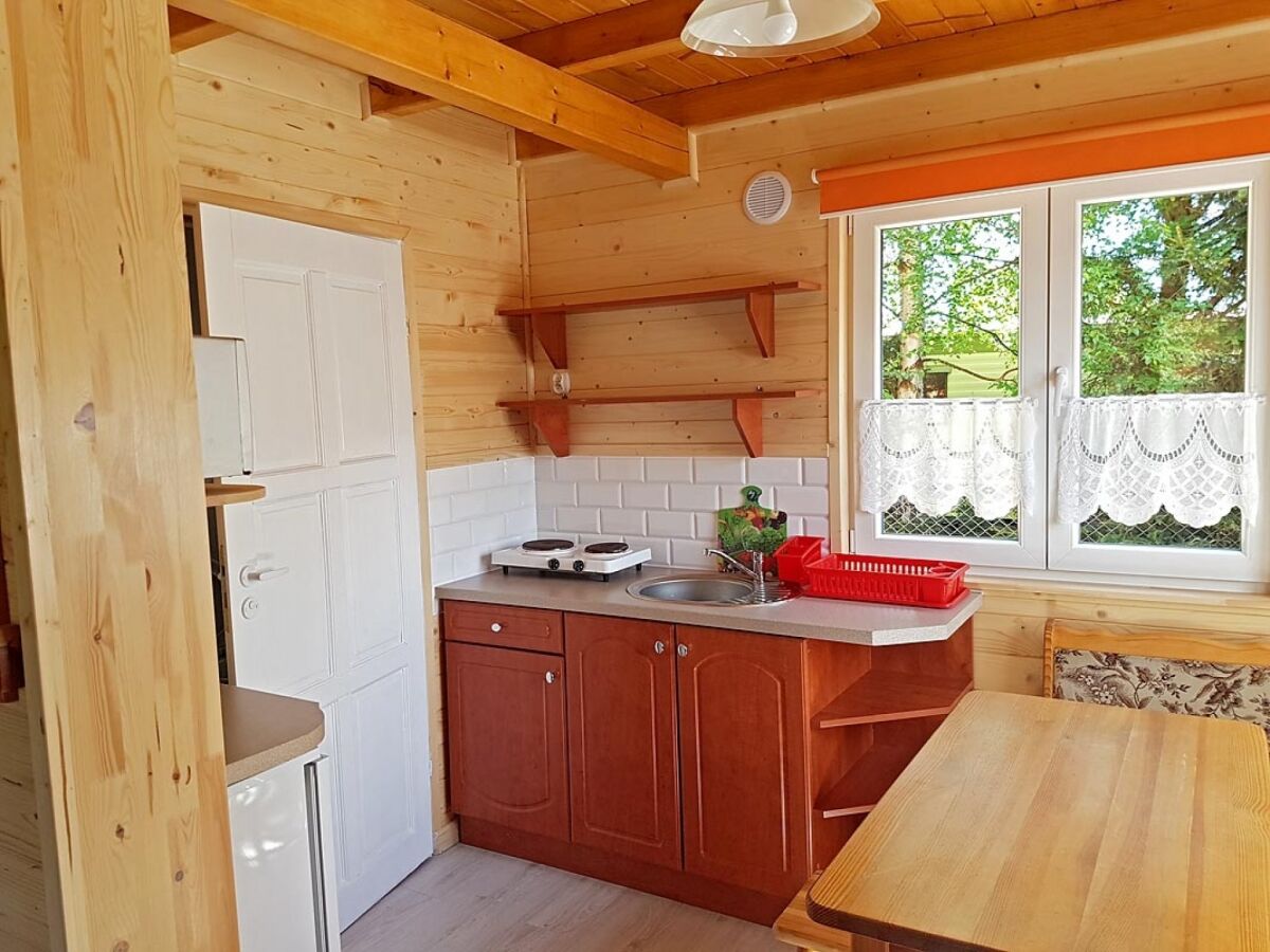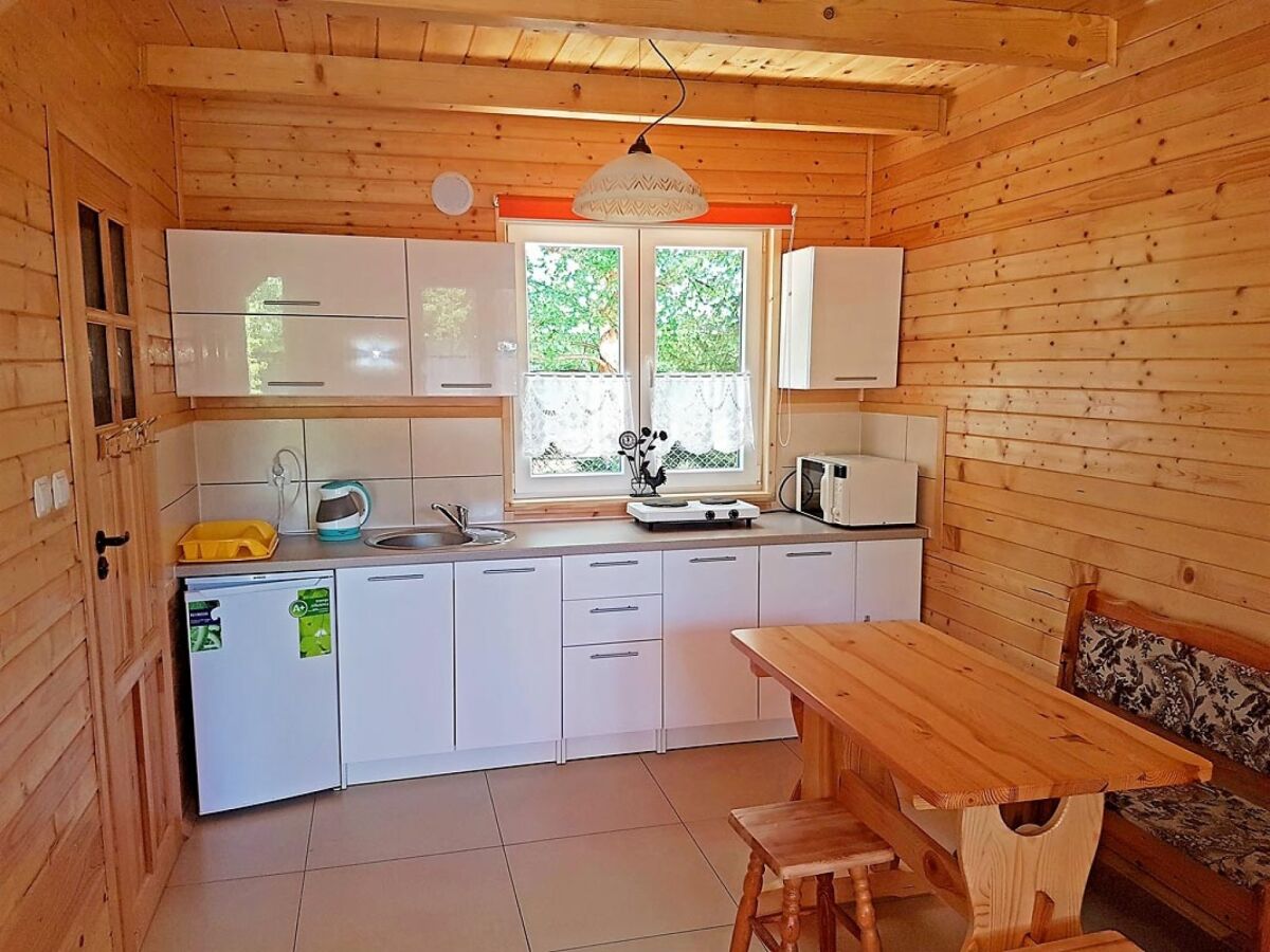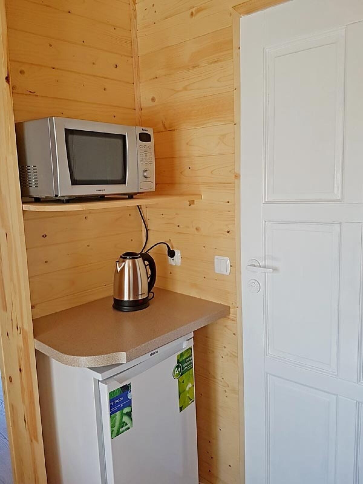 Aneks kuchenny jest w pełni wyposażony we wszystko, co niezbędne na wakacyjnym wyjeździe: kuchenkę elektryczną, mikrofalówkę, lodówkę, czajnik elektryczny, zestaw garnków, sztućce, szklanki i filiżanki.