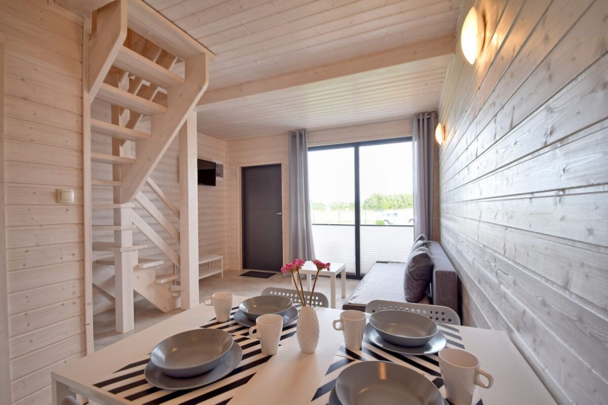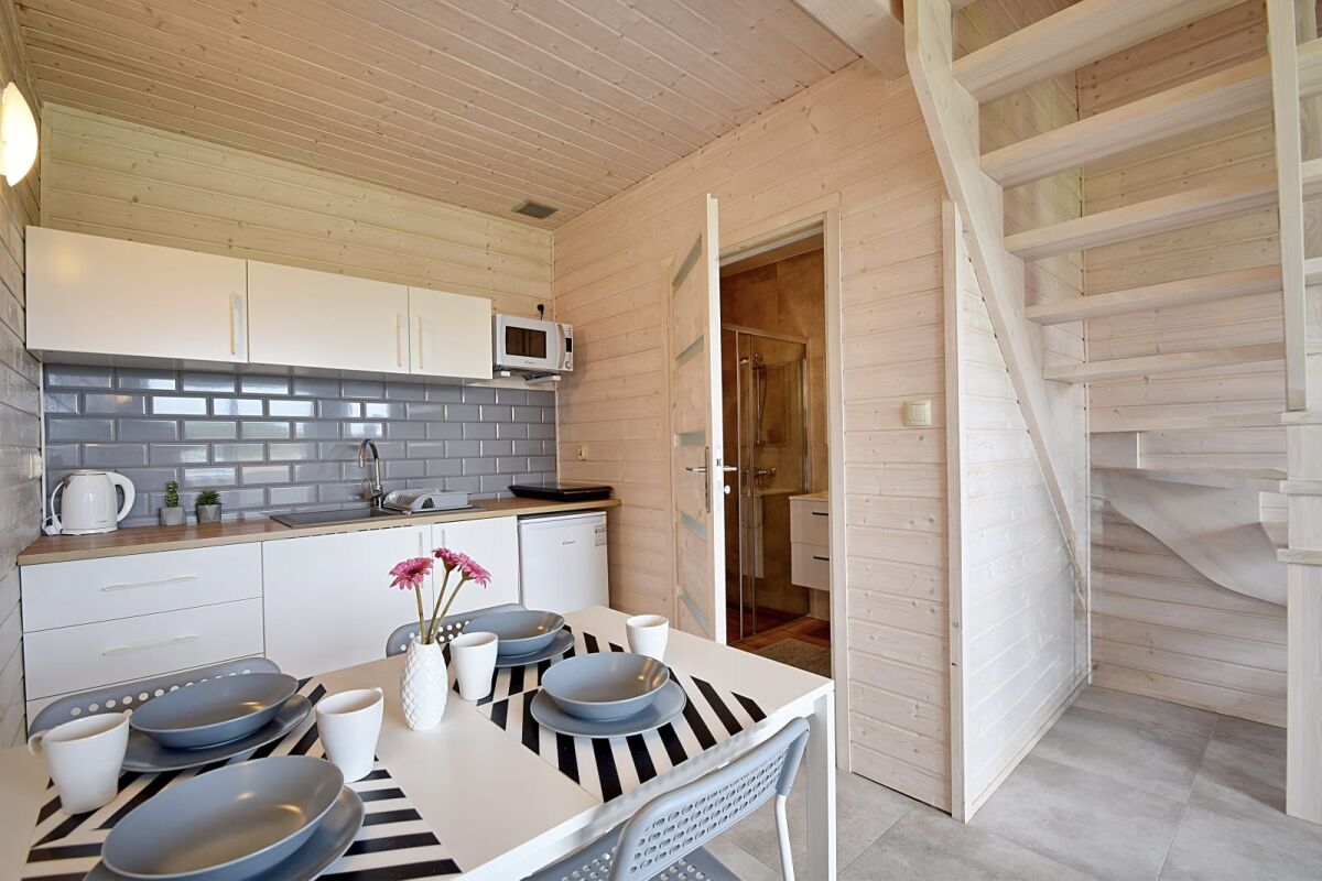 Każdy domek przeznaczony jest dla 6 osób (z możliwością dostawek) i składa się z: