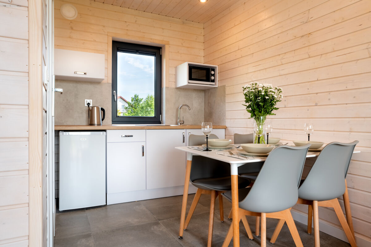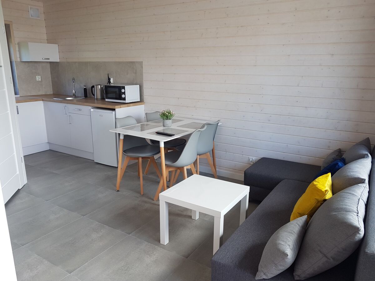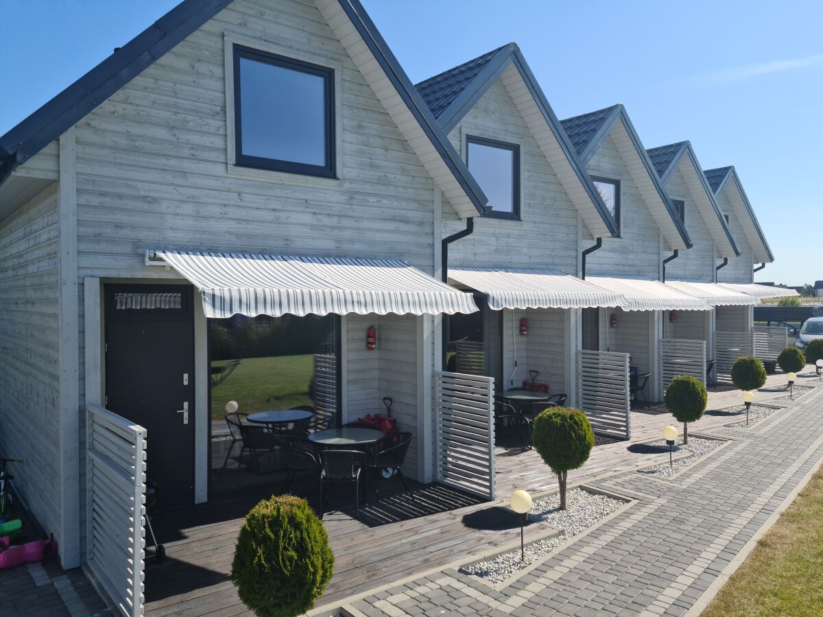 Do dyspozycji Naszych gości oddajemy 10 domków o powierzchni 42m2 wraz z tarasem 12m, który podczas dni słonecznych można przysłonić markizą.