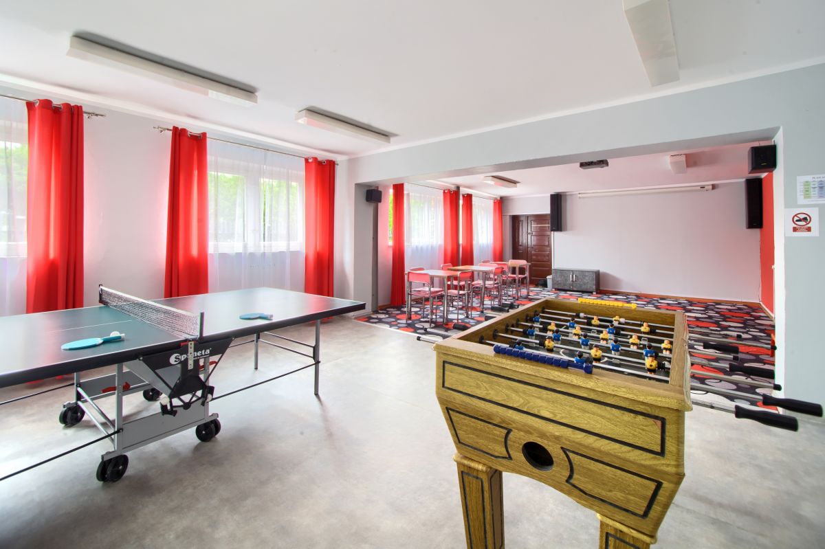 Na terenie ośrodka znajduje się stołówka i duży teren zielony, a na nim bezpieczny plac zabaw dla dzieci wyposażony w huśtawki, piaskownicę oraz duży zestaw z platformami i zjeżdżalniami dla wygody i uatrakcyjnienia spędzanego czasu dla Rodzin z dziećmi. Przez cały tydzień organizowane są animacje dla dzieci i dorosłych.