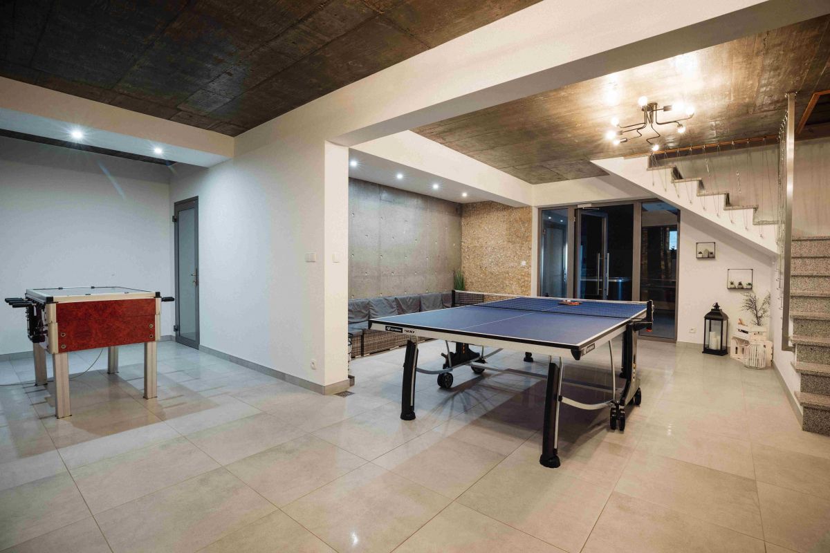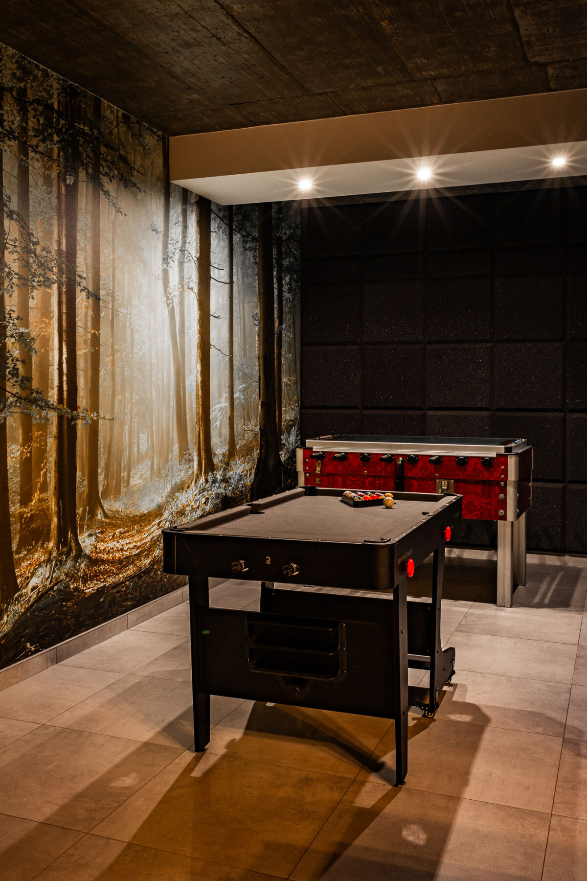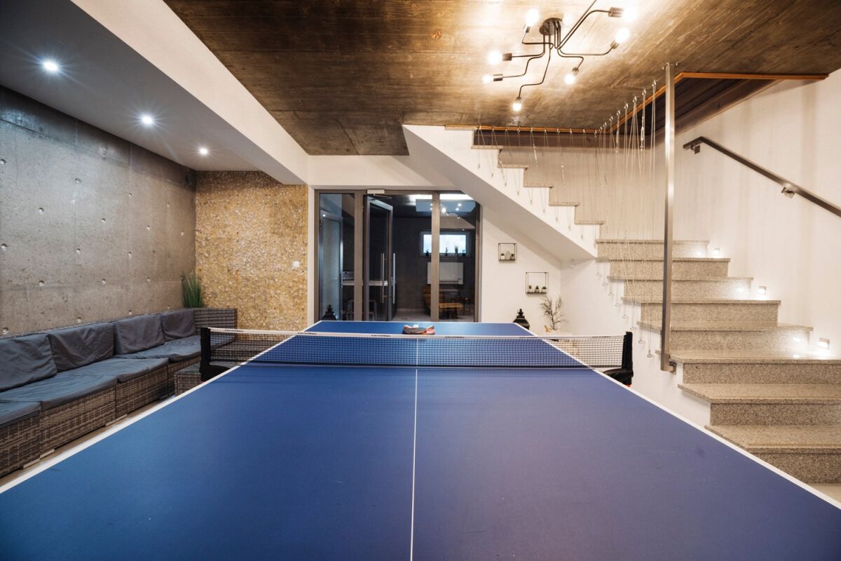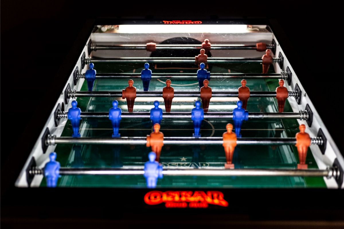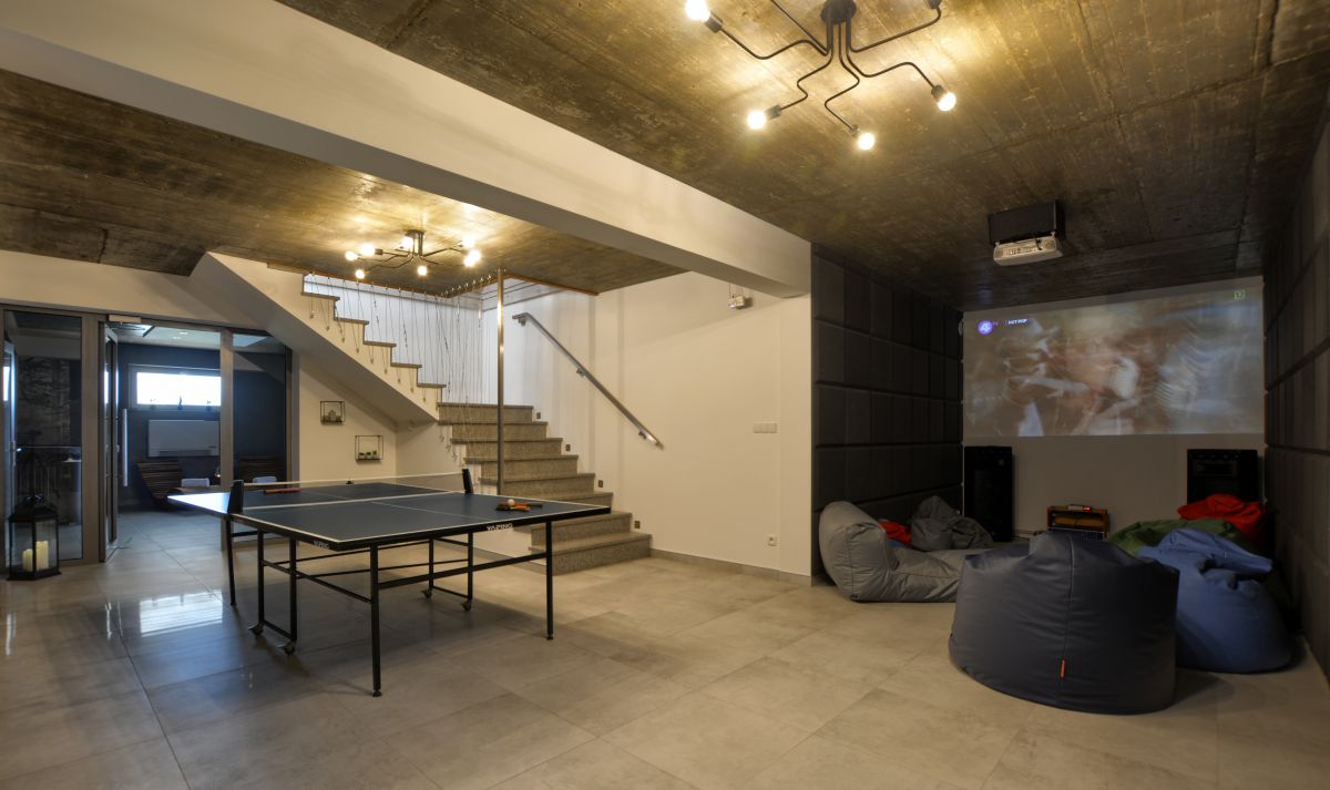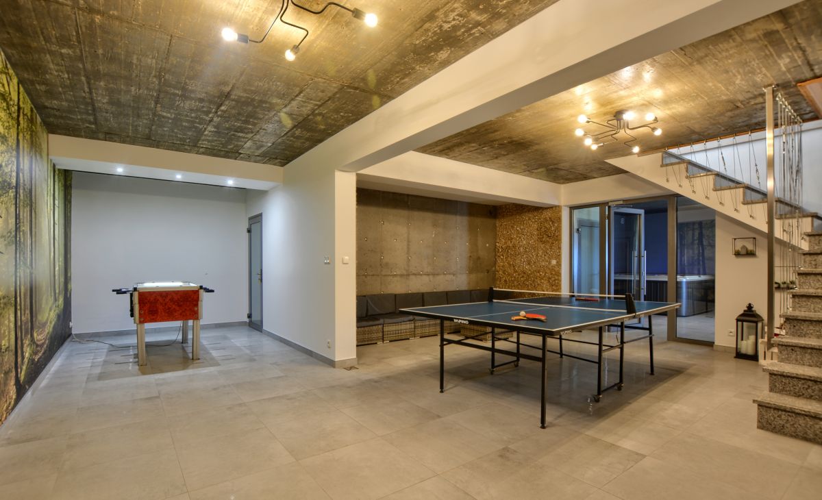 * sala rekreacyjna ze stołem do ping ponga i piłkarzykami;