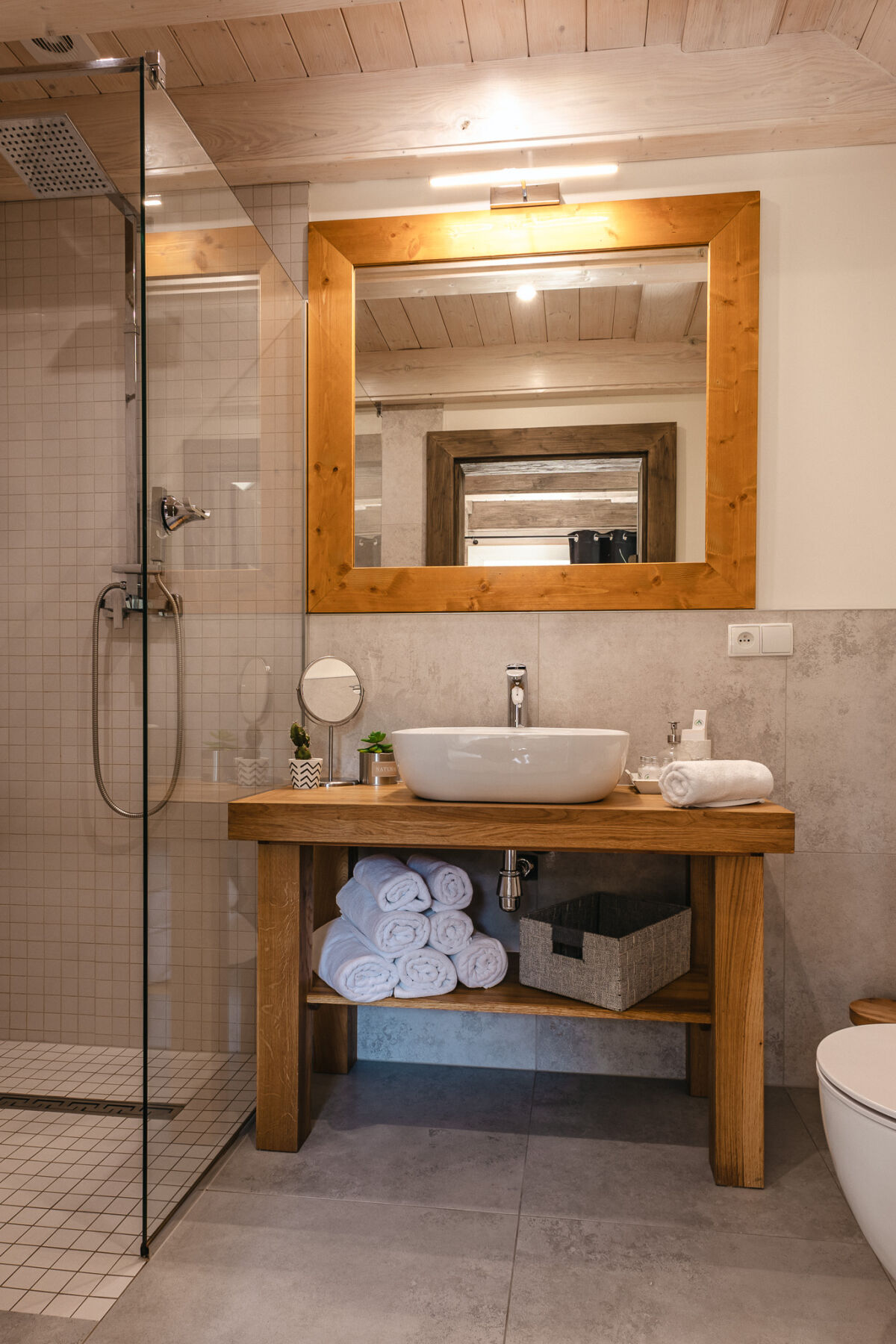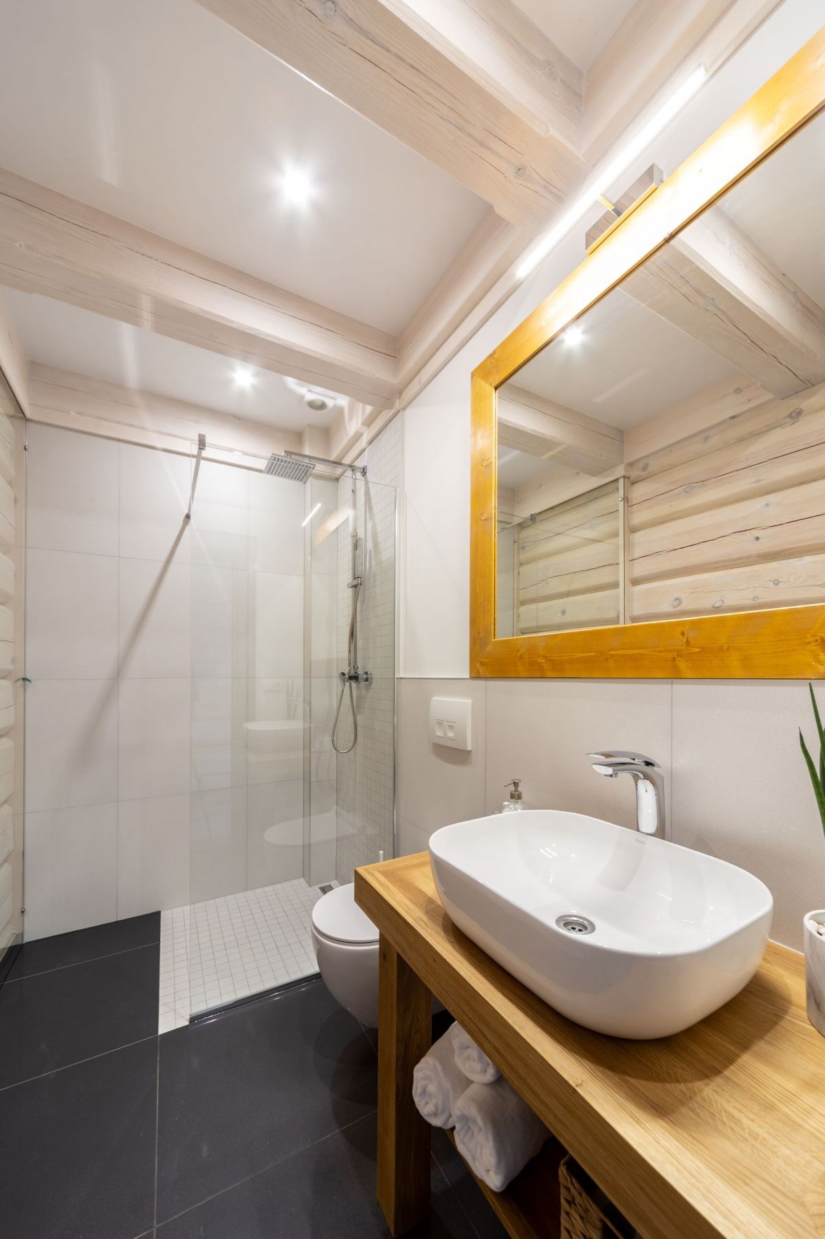 * przestronne, luksusowo urządzone łazienki z prysznicem, ręczniki oraz zestaw podstawowych "mini" kosmetyków (mydło, szampon, żel pod prysznic);