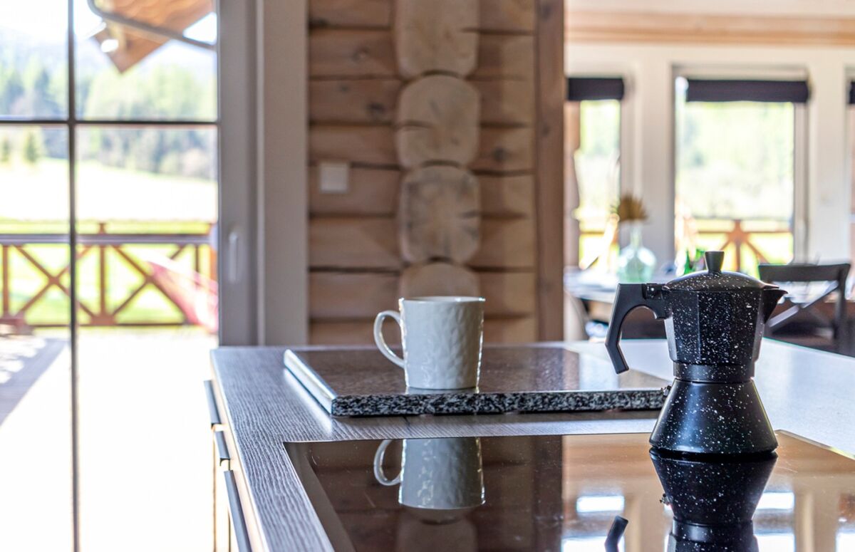 * wyposażona kuchnia, która pozwala na przygotowanie posiłków we własnym zakresie: lodówka z kostkarką, mikrofalówka, zmywarka, płyta grzewcza, ciśnieniowy ekspres do kawy z zapasem kawy, podstawowe przyprawy, środki czystości i oczywiście naczynia kuchenne i stołowe;