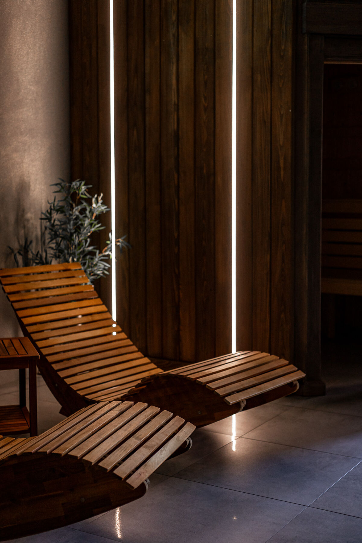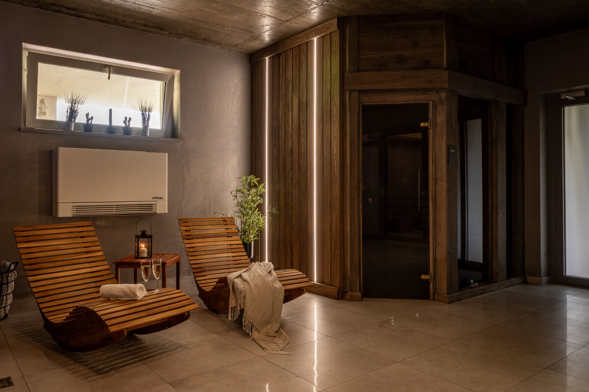 * SPA z jacuzzi oraz sauną suchą i parową, strefa relaksu z prysznicem i WC;