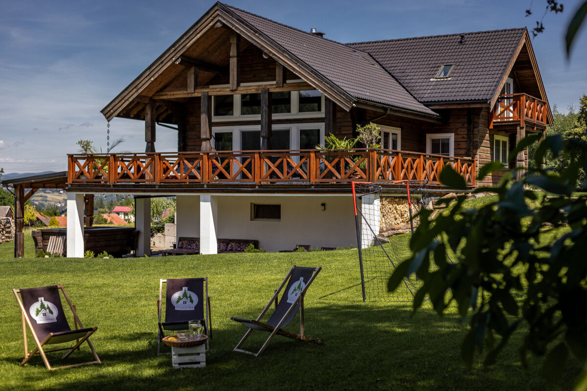 CHATA POD PRZEHYBĄ - to luksusowy dom w górach do wynajęcia. Ekologiczna budowla z bali sosnowych jest usytuowana w malowniczej okolicy Beskidu Sądeckiego. Zapraszamy!! Wykonana jest z dbałością o najdrobniejszy szczegół tak, aby każdy poczuł w niej atmosferę luksusu oraz domowego ciepła.