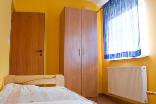 - domki 5-6-osobowe - salon z kominkiem i TV, łazienka, aneks kuchenny z lodówką, 2 niezależne sypialnie, grill.