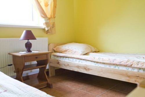 - domki 4-5-osobowe - 2 pokoje, TV, aneks kuchenny, lodówka, łazienka, wiata, grill.