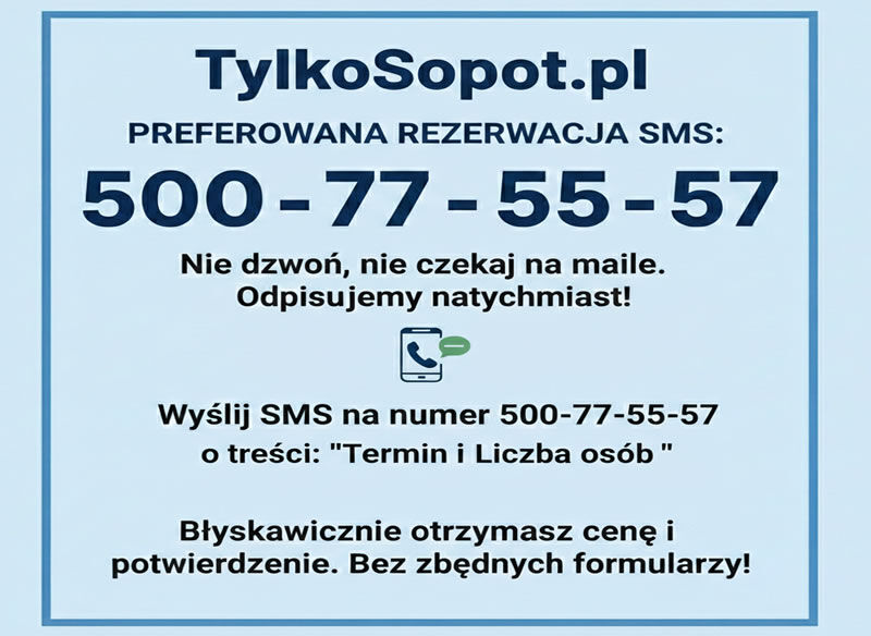 Wyślij SMS na numer 500 77 55 57 o treści: " Termin i Liczba osób "