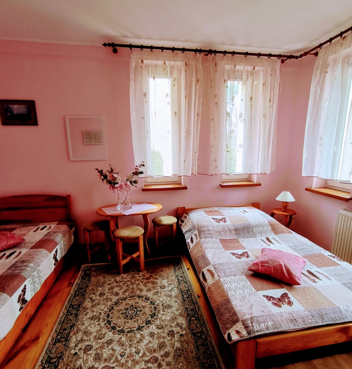 Do dyspozycji gości są pokoje 2-osobowe i 3-osobowe oraz pokój 4-osobowy z osobnym wejściem i niezależną łazienką. Wszystkie pokoje posiadają łazienkę oraz wyposażone są w lodówkę, czajnik bezprzewodowy i zastawę stołową.