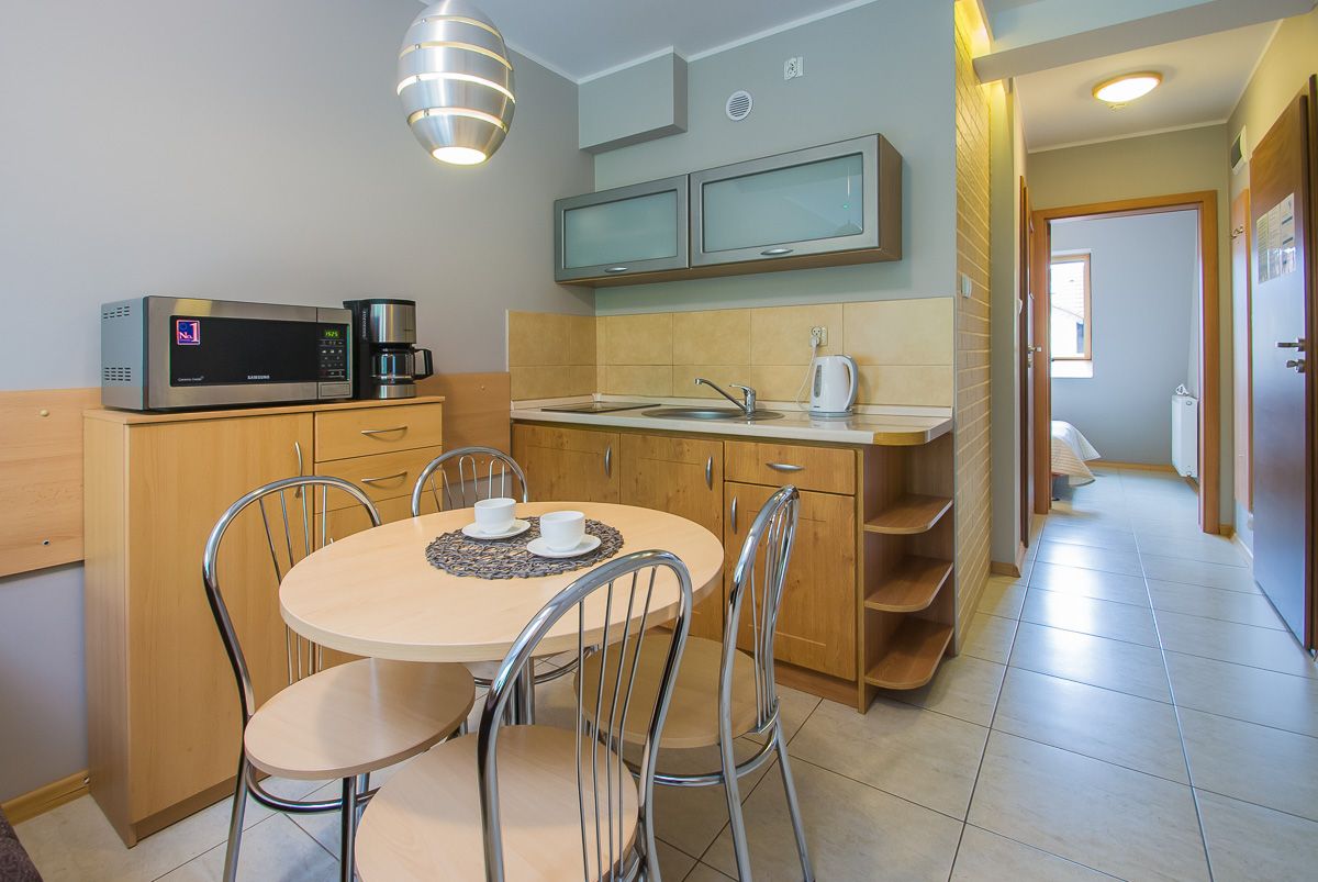 Do Państwa dyspozycji oddajemy 7 pokoi, w tym dwupokojowe apartamenty przeznaczone dla 4 - 6 osób. Zarówno pokoje, jak i apartamenty posiadają w pełni wyposażone aneksy kuchenne oraz funkcjonalne łazienki z natryskami.