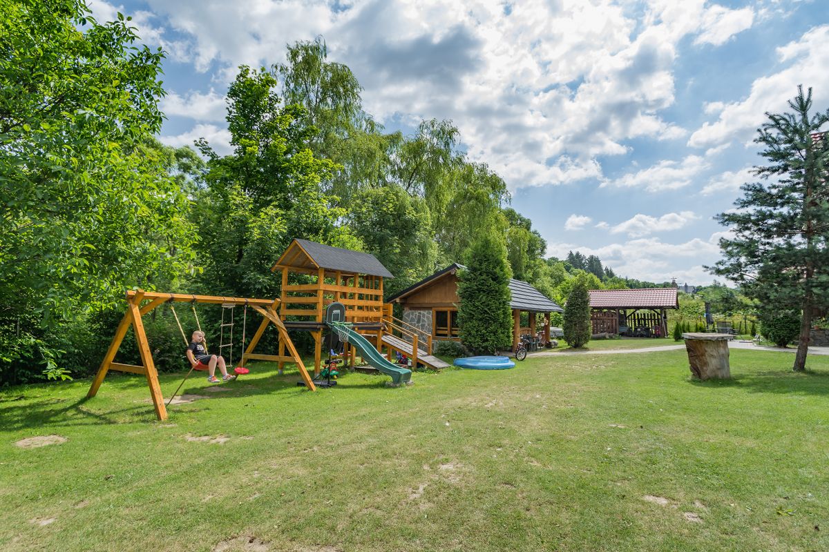 W ogrodzie czeka na Państwa klimatyczny szałas z grillem, plac zabaw dla najmłodszych z zabawkami, a wszystko to nad brzegiem potoku górskiego Grajcarek, w którym można się ochłodzić w upalne dni.
