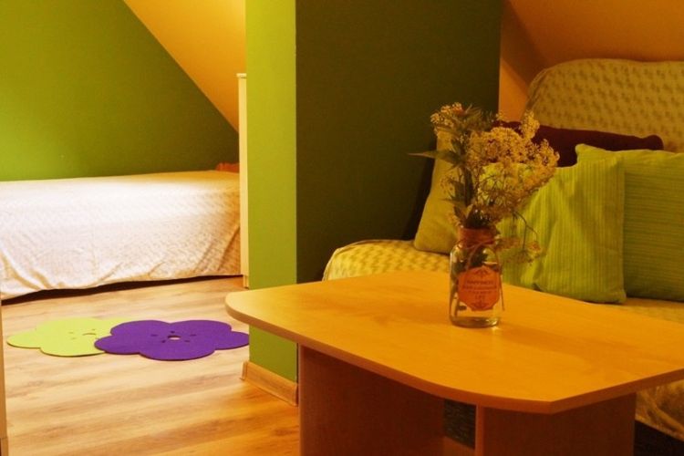 Pokoje pod Orłem znajdują się na niewielkim wzniesieniu, skąd rozpościera się widok na góry i las. Możliwość odpoczynku i relaksu dopełnią liczne atrakcje okolicy. Oferujemy Państwu 25 komfortowych miejsc noclegowych w domu i domku. W domu do dyspozycji gości posiadamy nowoczesne pokoje, z dostępem do w pełni wyposażonych aneksów kuchennych (kuchenka, lodówka, mikrofalówka, czajnik elektryczny, naczynia, sztućce) i łazienek znajdujących się na każdym piętrze. Na działce znajdują się huśtawki, stoły, ławy, grill, plac zabaw dla dzieci oraz parking.