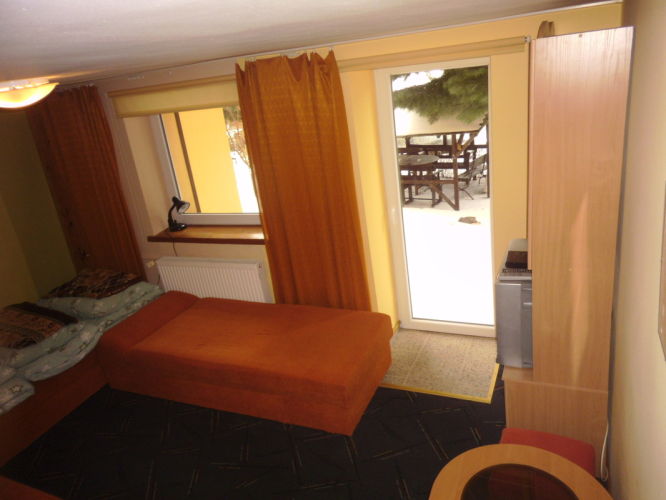 Mamy do zaoferowania: dwuosobowy pokój bez tarasu, trzyosobowy pokój z tarasem (bezpośrednie wyjście do ogrodu), czteroosobowy pokój z tarasem (bezpośrednie wyjście do ogrodu).