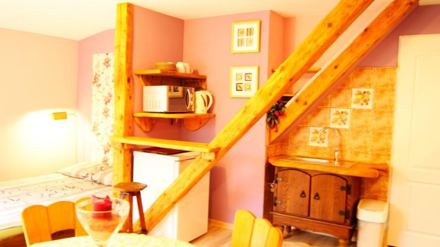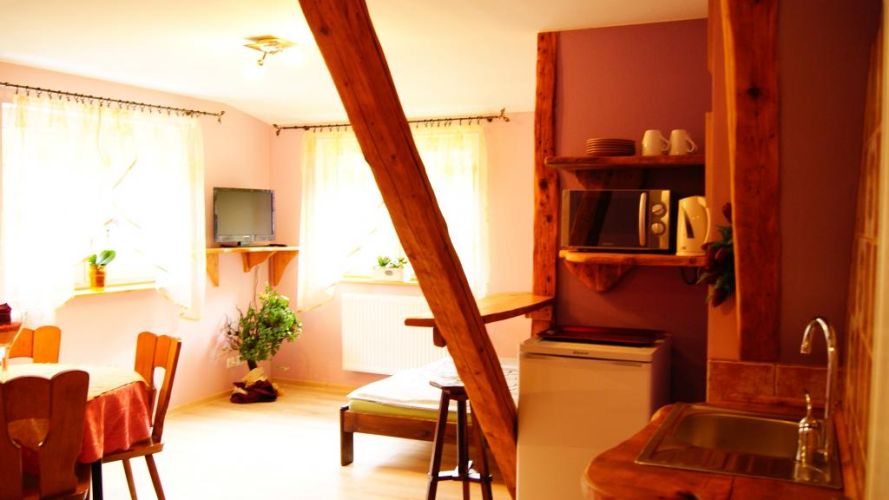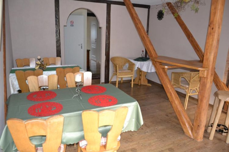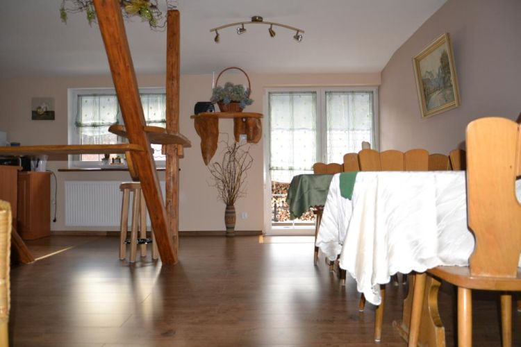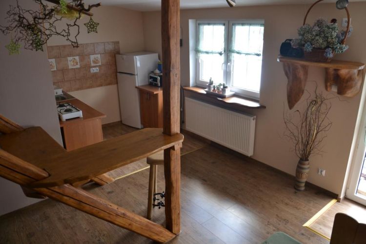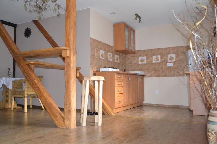 Do dyspozycji Gości wspólna kuchnia z miejscem do posiedzenia i spożycia posiłków. Kuchnia jest w pełni wyposażona - sztućce, talerze, garnki oraz wspólna duża lodówka. By umilić swój czas można skorzystać z grilla, a także z wiaty przeznaczonej tylko dla wczasowiczów, znajdującej się zaraz za domem. Na terenie obiektu miejsca parkingowe.