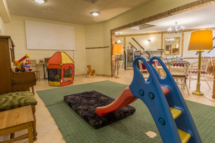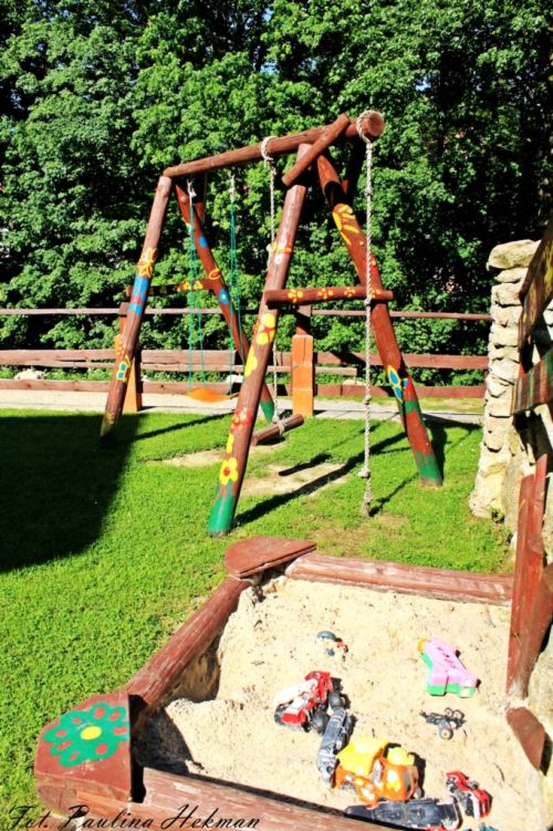 Nie zapomnieliśmy również o naszych milusińskich – małych wielkich ludziach. Stworzyliśmy dla nich plac zabaw na zewnątrz, a w przypadku niepogody piłkarzyki i gry planszowe w obiekcie.