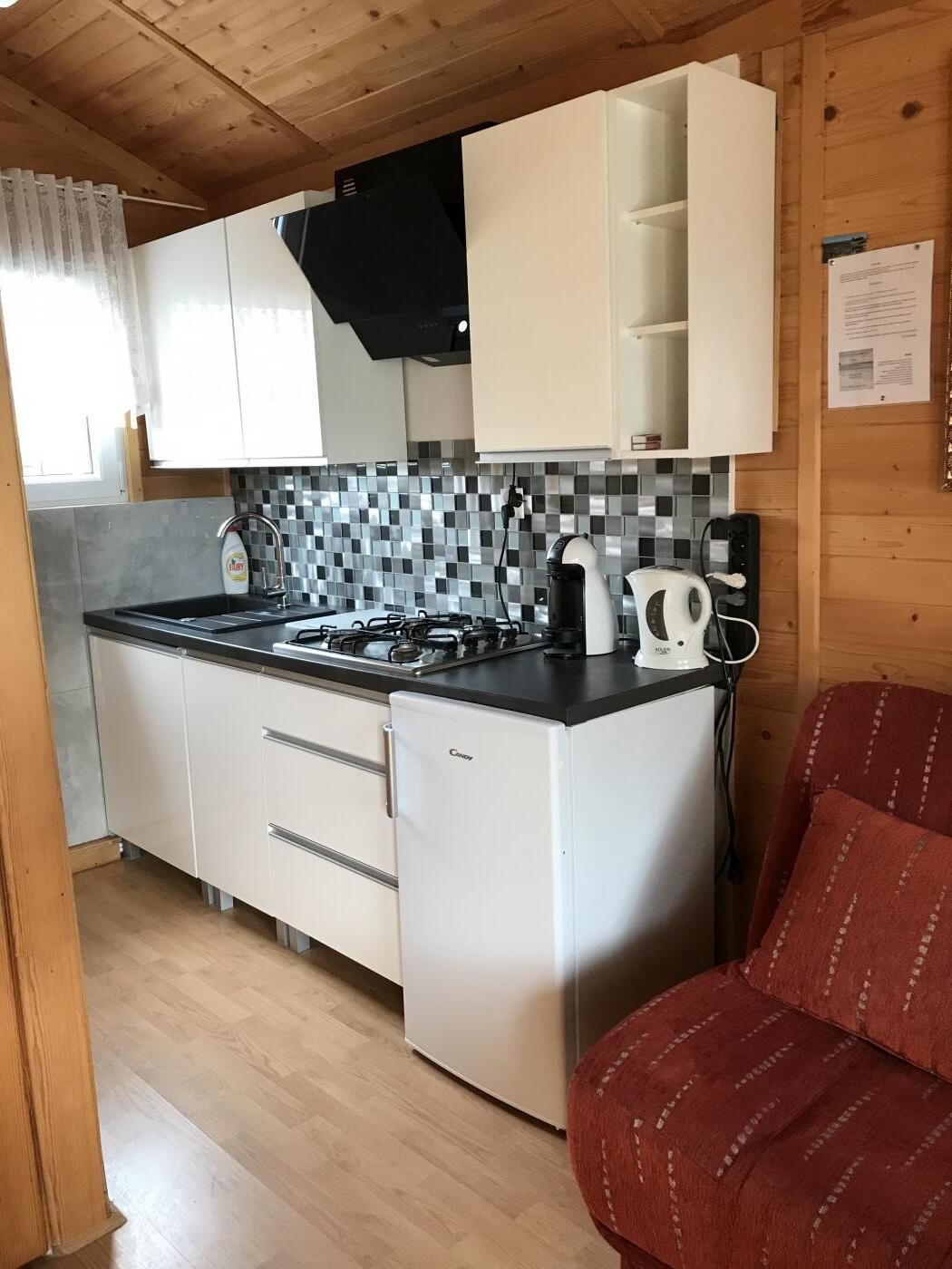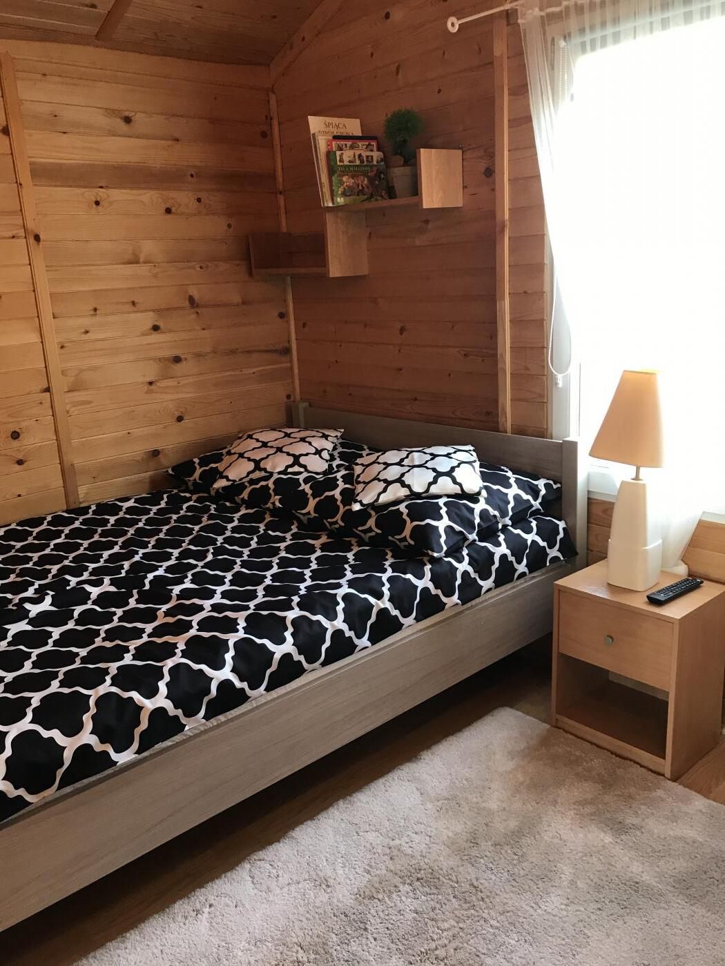 Domki 4-, 5 - osobowe posiadają: jedną sypialnię, pokój dzienny z aneksem kuchennym i łazienkę.